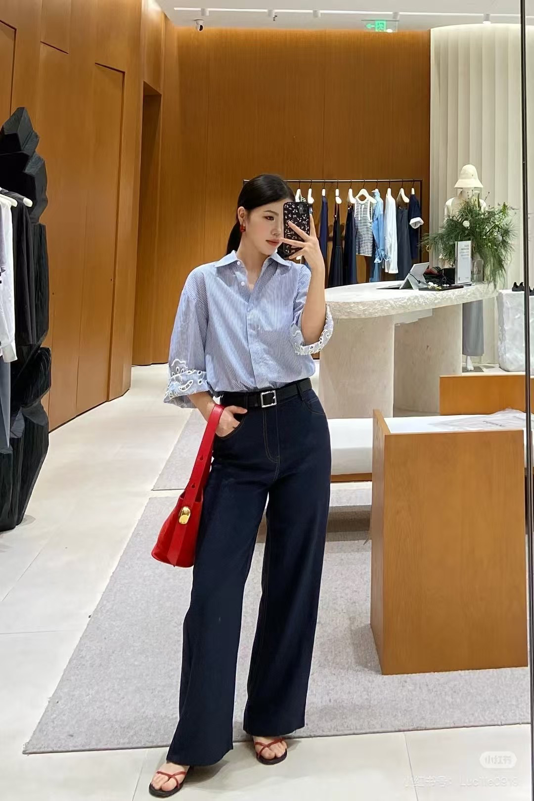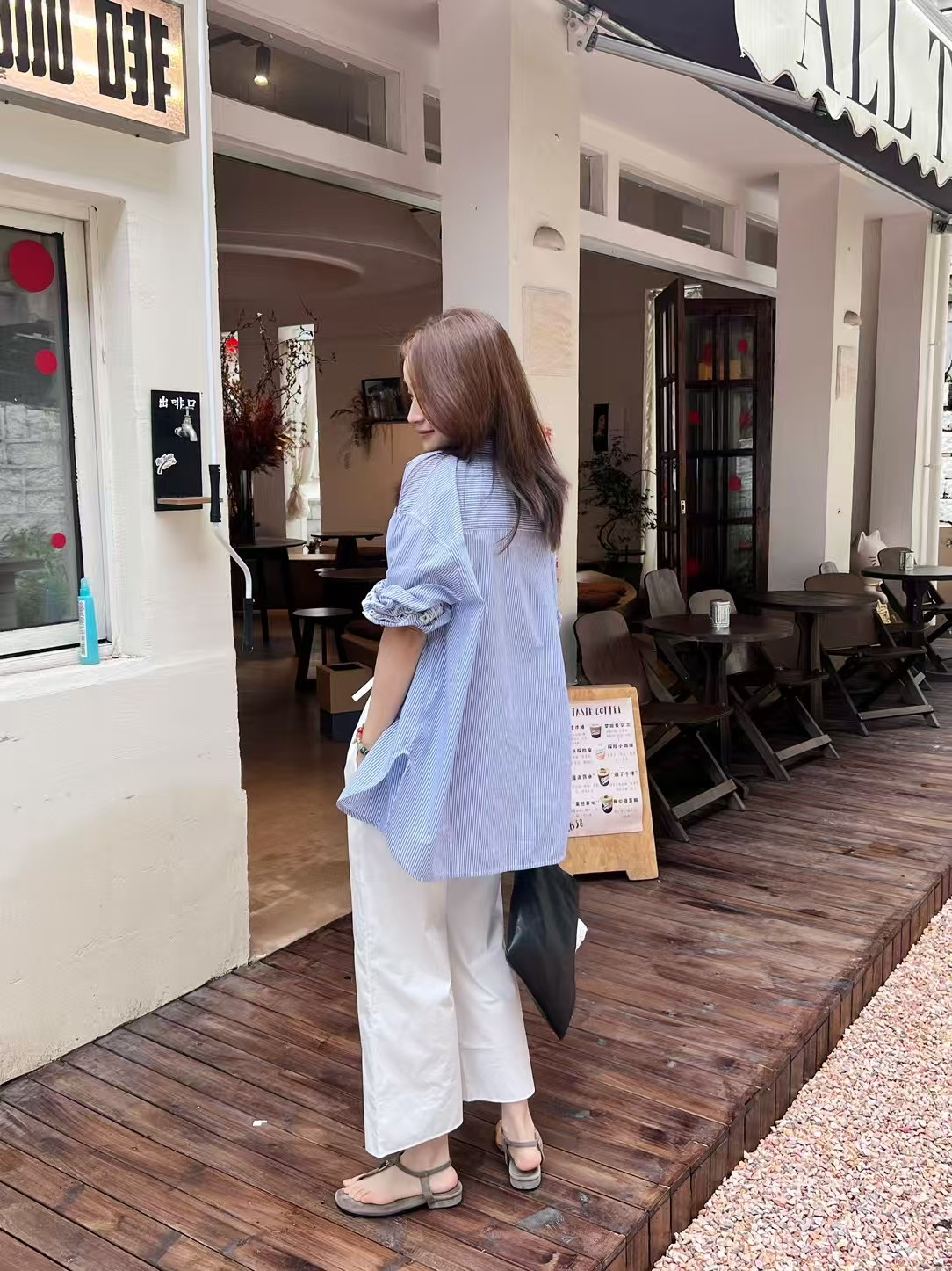 式慵懒滤镜,日常衬衫单穿配牛仔裤,