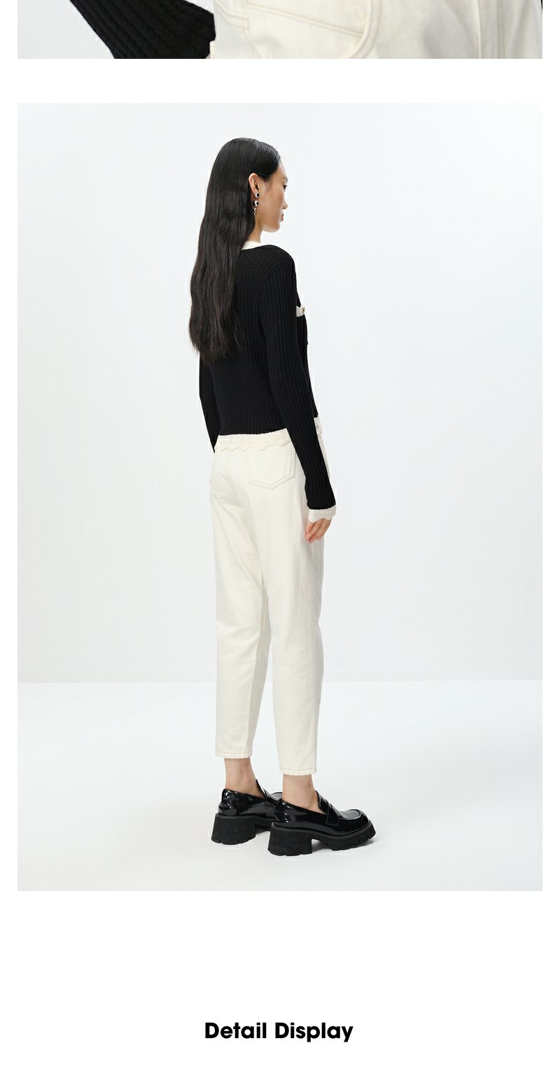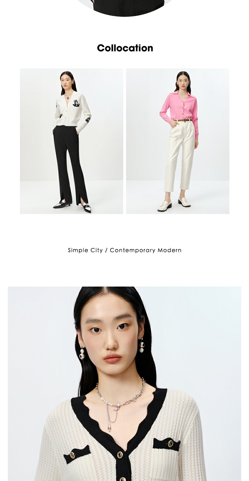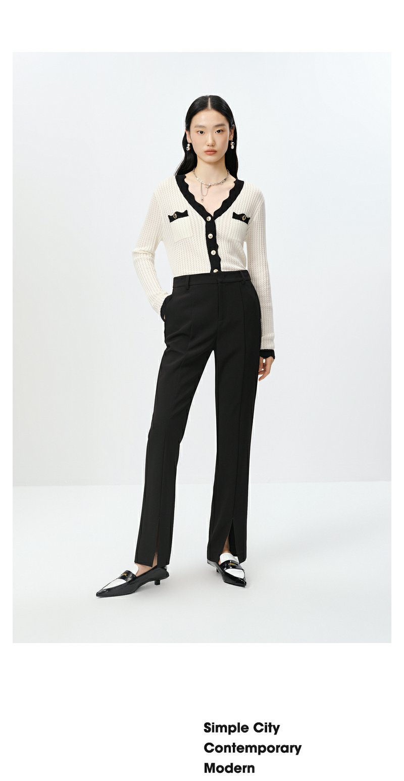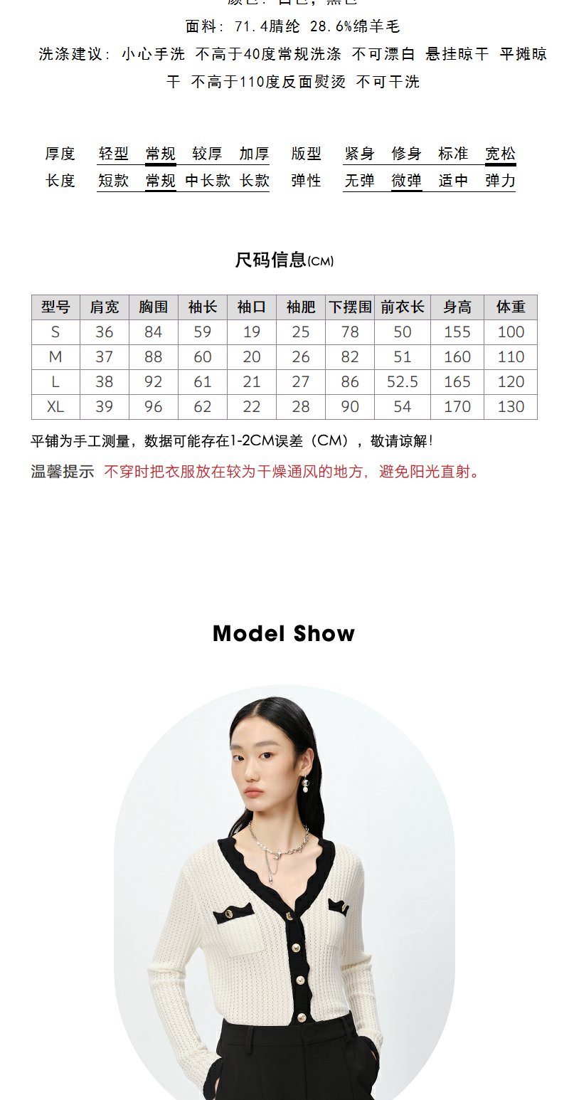 NEELLY纳俪商场同款气质V领针织衫女撞色黑边单排扣开衫上衣时尚N23022A01079