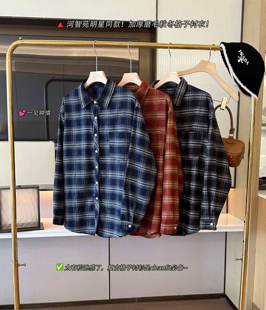 河智苑明星同款!加厚磨毛秋冬格子衬衣!是我一见钟情的一件呀!