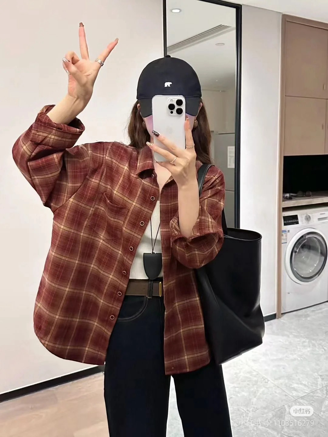 秋天怎么能少得了格纹衬衫呢,实穿指数很高的一件,单穿 内搭 叠穿或外搭都绝绝子~
