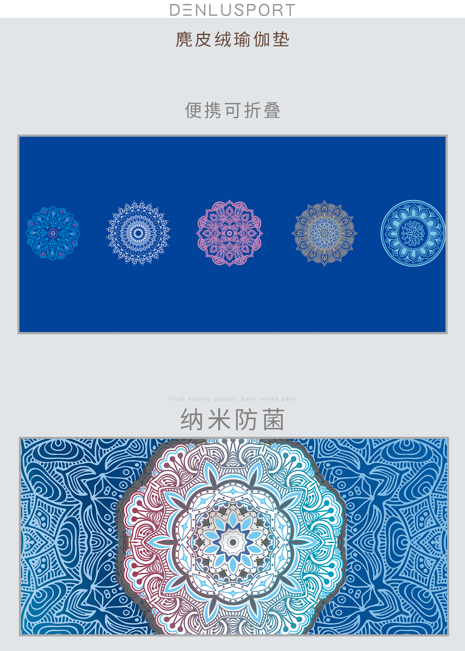 麂皮绒瑜伽垫#防滑 便携折叠#健身 瑜伽专用垫子 绒面吸汗亲肤 橡胶底层吸附地面