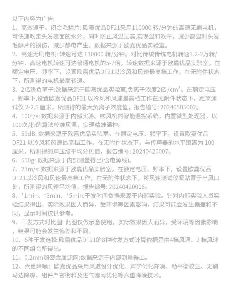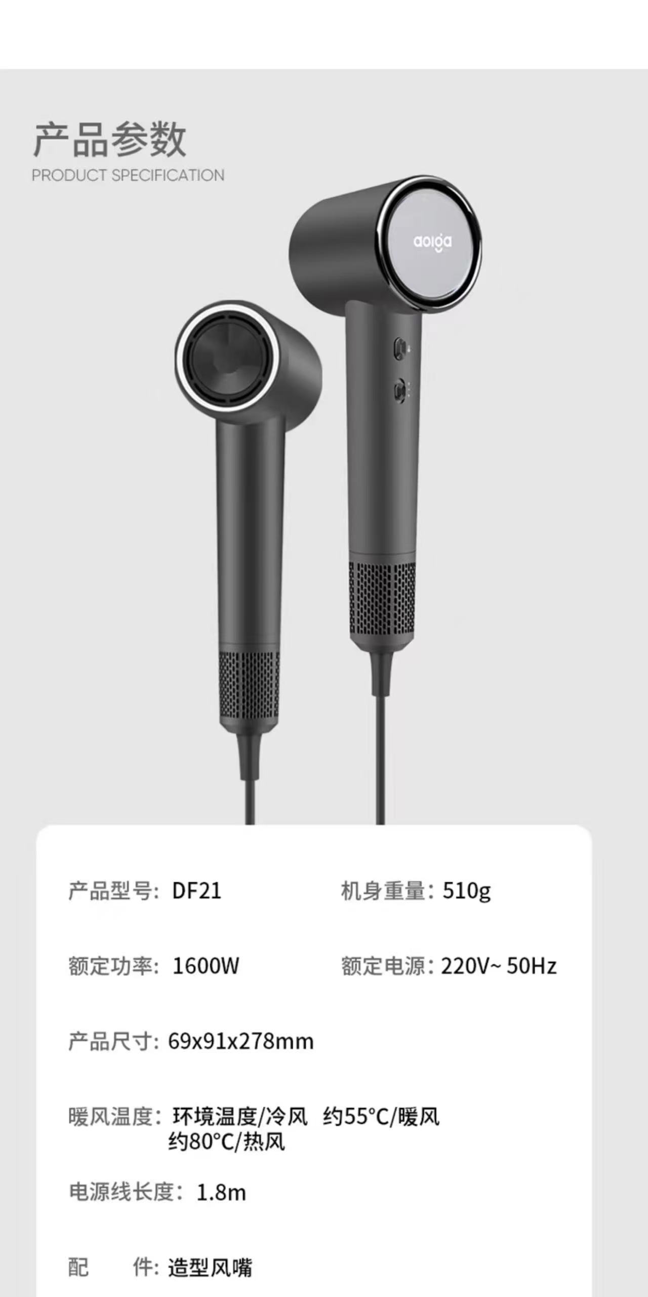 Aolga 欧嘉优品高速吹风机家用速干大风力负离子恒温护发吹风DF21