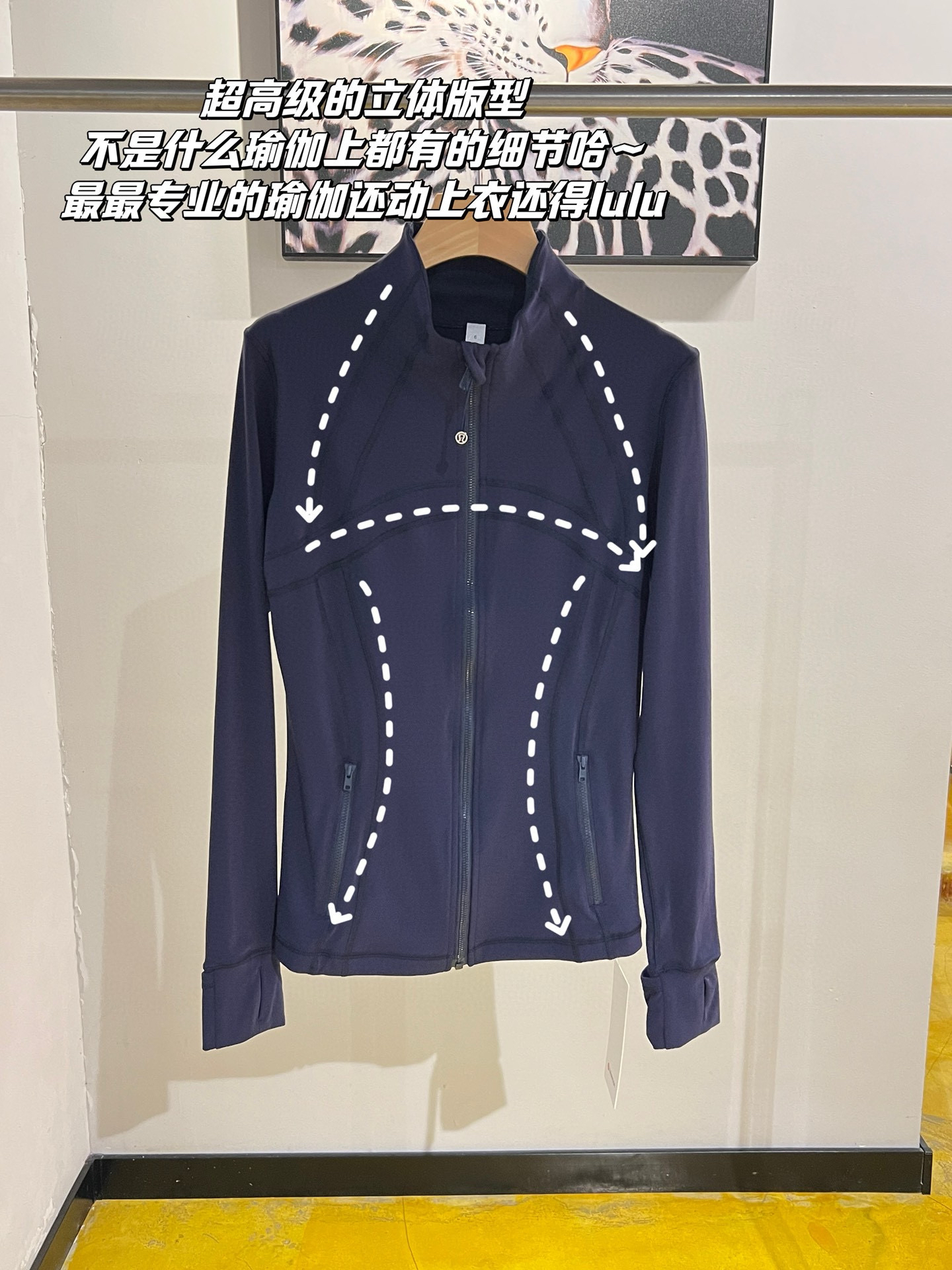 1⃣️【在剪裁设计上】:它完全不同于简单的两大片,而是由【30块裁片】拼缝而成!胳膊8块、前幅14块、后幅8块,剪裁完全遵循了女性的身材特点,所以上身就能达到前凸后翘!上身堪比穿了一件“束身衣”!!!而袖口的防滑、防风;两边的小口袋;拉链顶端防止夹脖子的小贴布;后背开放式网布排汗等小心机贴心设计,更是处处彰显Lulu的人性化剪裁魅力!!