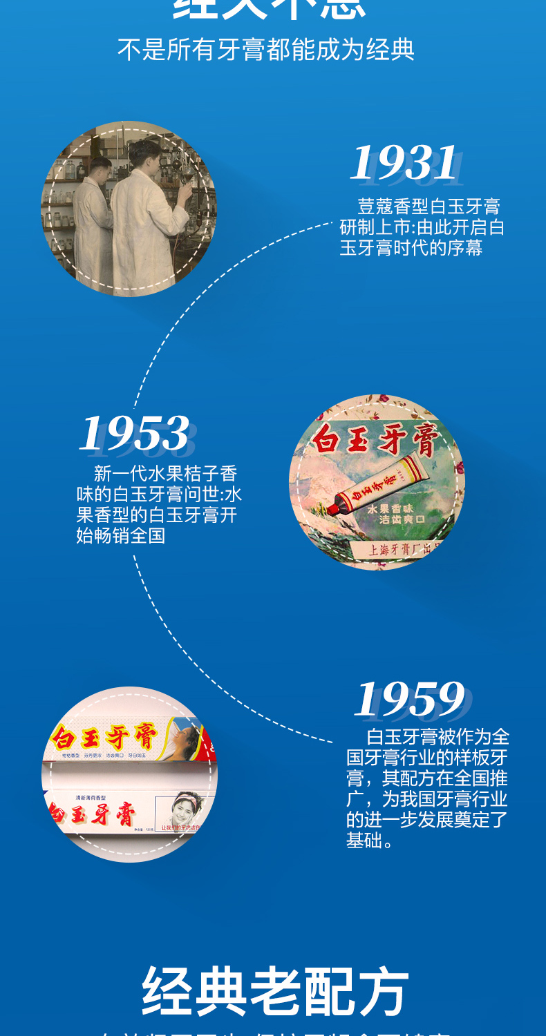 - 【107年企业历史】前身“中国化学工业社”,创建于1912年,后又更名为“国营上海牙膏厂”至今已有107年企业历史;国企背景,真正的国货