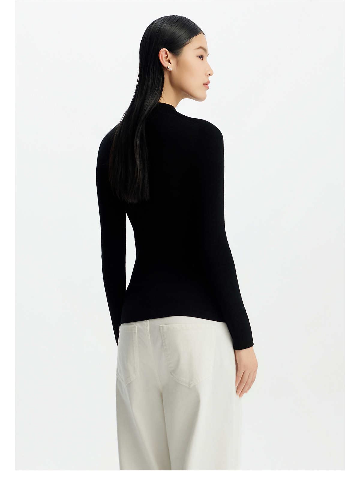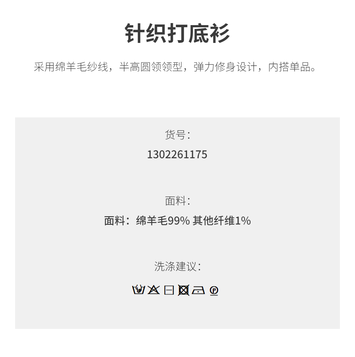 PURE TOUCH女装26春夏新款半高圆领打底衫羊毛弹力修身内搭针织衫
