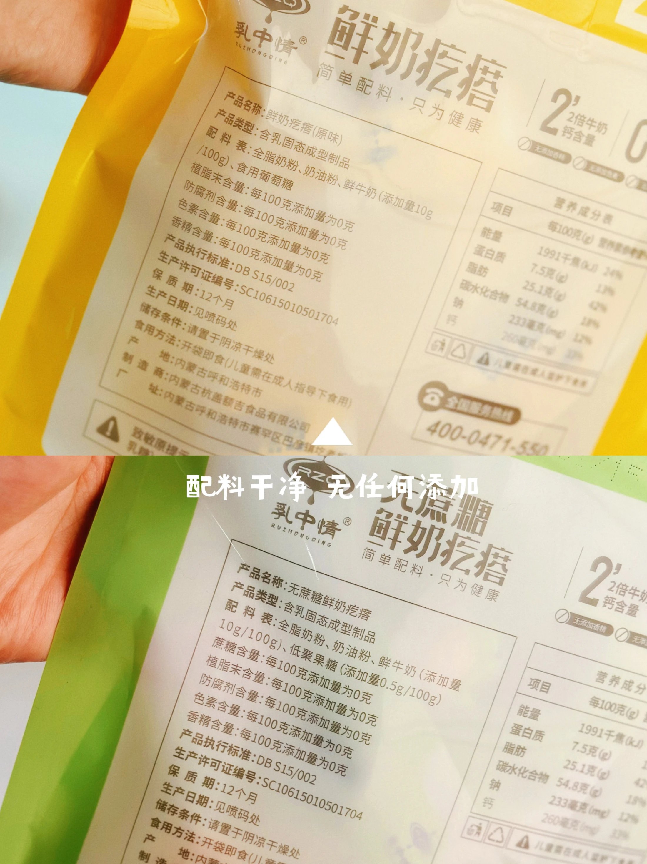 品名:内蒙古鲜奶疙瘩 口味:原味258g/袋/无蔗糖味258g/袋(约12个/袋) 配料: 原味(全脂奶粉、奶油粉、鲜牛奶(添加量10g/100g、食用葡萄糖); 无蔗糖味(全脂奶粉、奶油粉、鲜牛奶(添加量10g/100g、低聚果糖(添加量0.5g/100g) 生产日期:近期(随批次更新) 保质期:12个月 保存方式:阴凉干燥处 发货地:内蒙古呼和浩特 发货时效:72小时,爆单顺延 发货快递:圆通/邮政/极兔随机 不发货地区:新疆、西藏、青海不发货 售后规则:食品不支持无理由退换货!,收到有产品质量问题24小时内联系客服处理