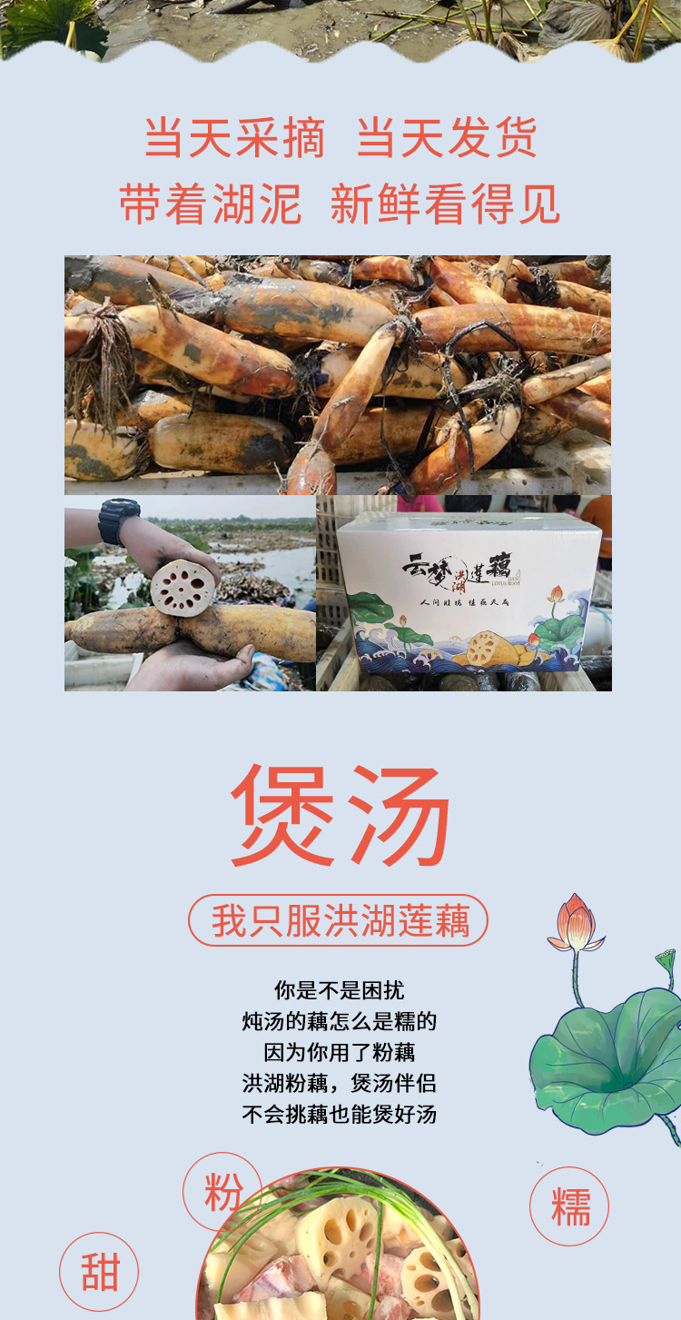 🍃 藕品特质传统老品种粉藕,淀粉结构独特,炖煮呈淡粉色,入口清甜回甘。