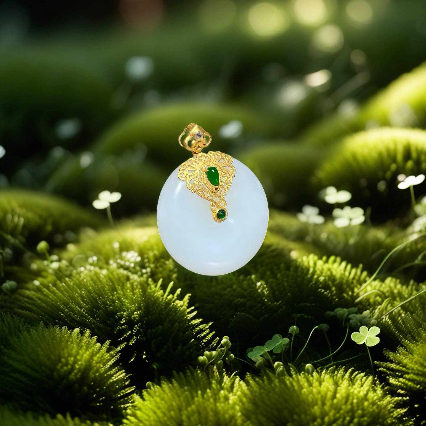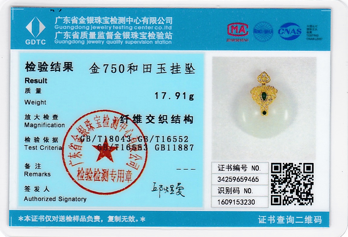 18k古法黄金和田玉(白玉)吊坠