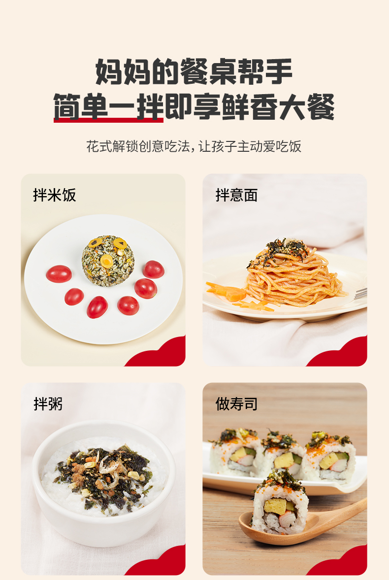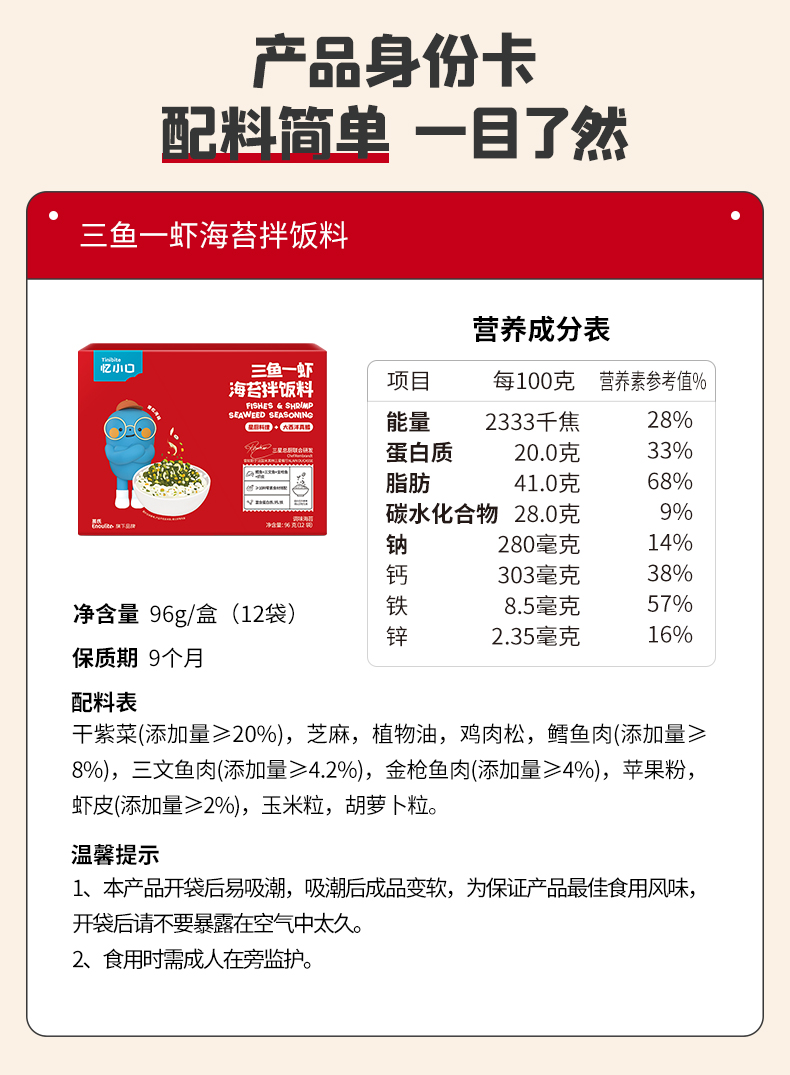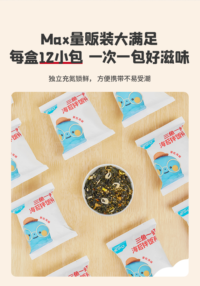 3件7折【任选3件+送赠品3件】英氏忆小口拌饭料肉肉系列(三鱼一虾海苔拌饭料+猪肉松+午餐肉+牛肉棒+肉肠)