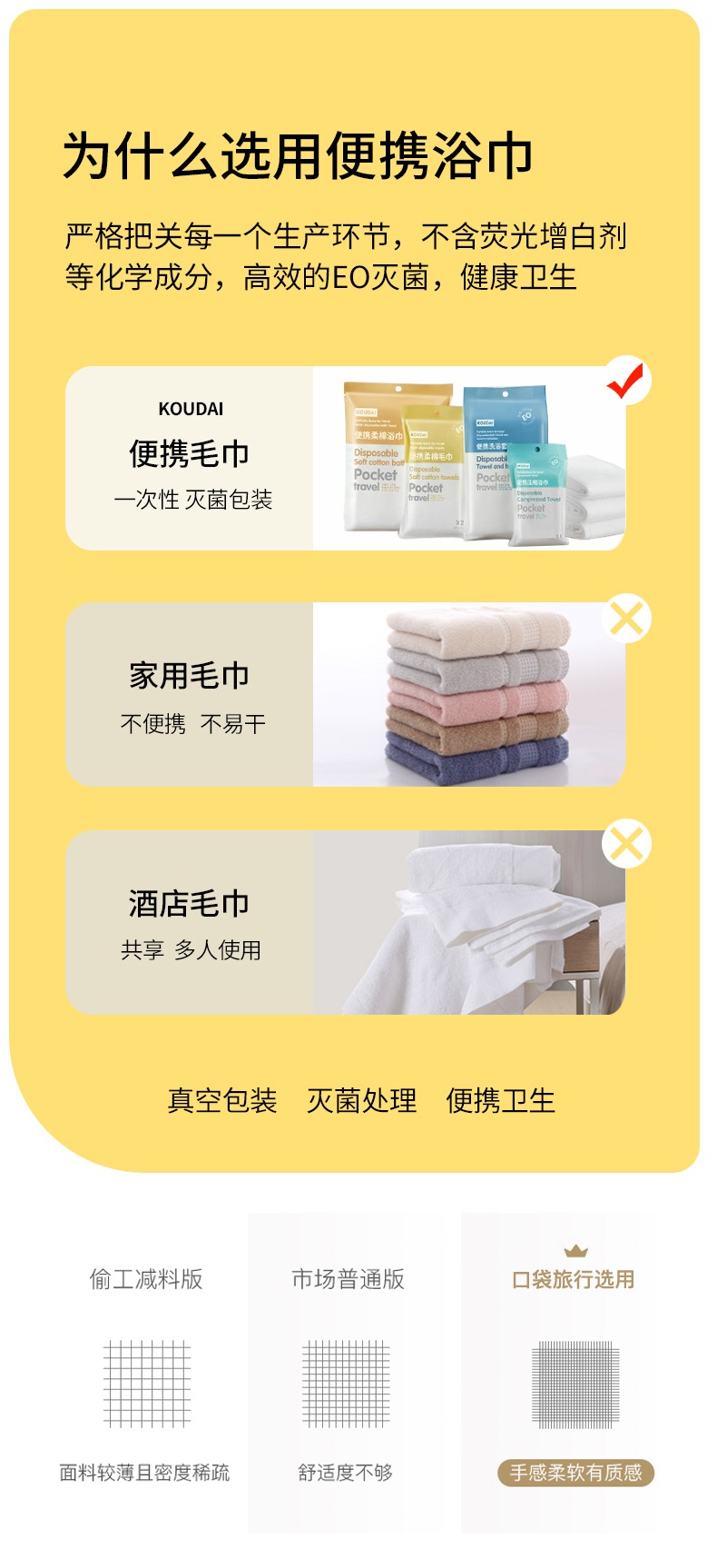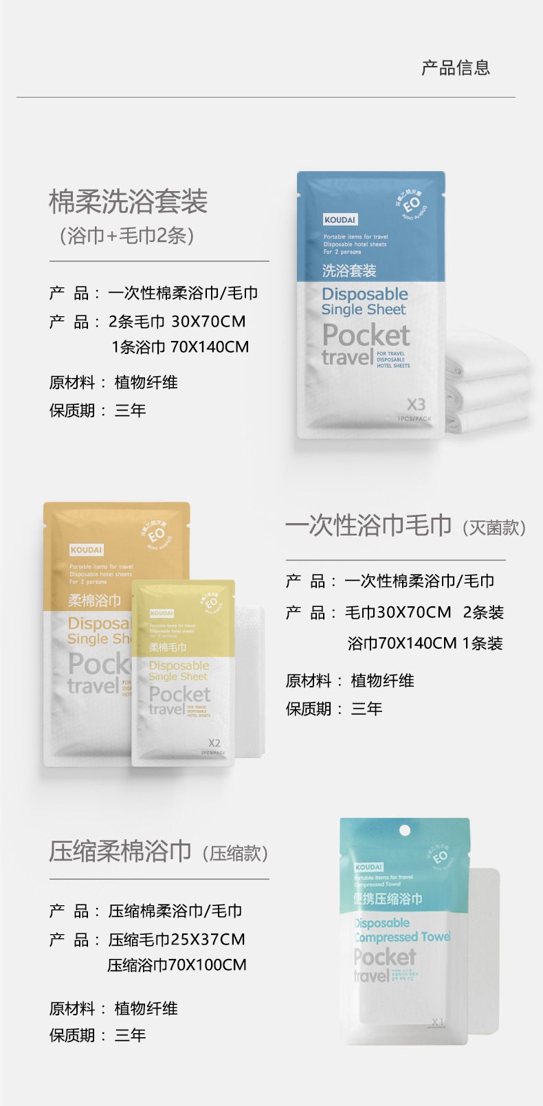 口袋旅行 一次性浴巾压缩毛巾洗脸巾 外出旅游便携用品独立包装