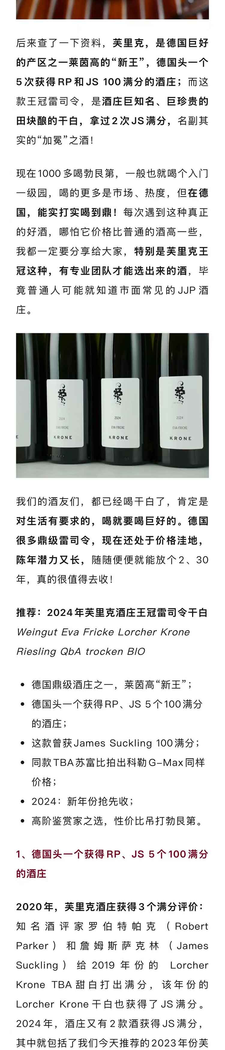 【5个100满分酒庄】德国莱茵高2024年德国芙里克雷司令干白
