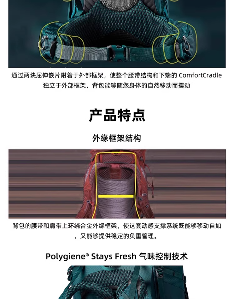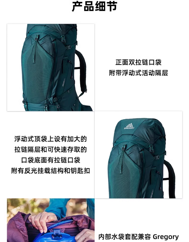 Gregory格里高利 DEVA行疆60L女款重装徒步登山背包户外大容量双肩包