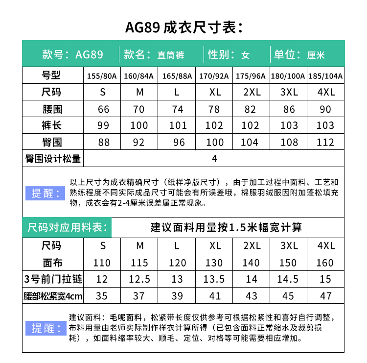 裁缝学苑AG89女士直筒阔腿裤休闲裤子纸样服装女裤样板新款裁剪图
