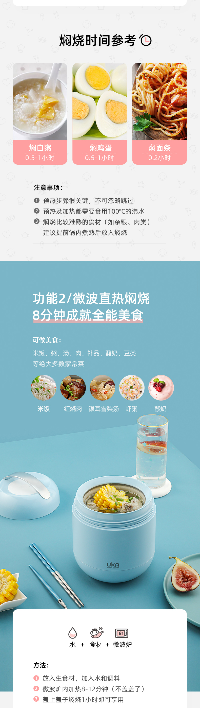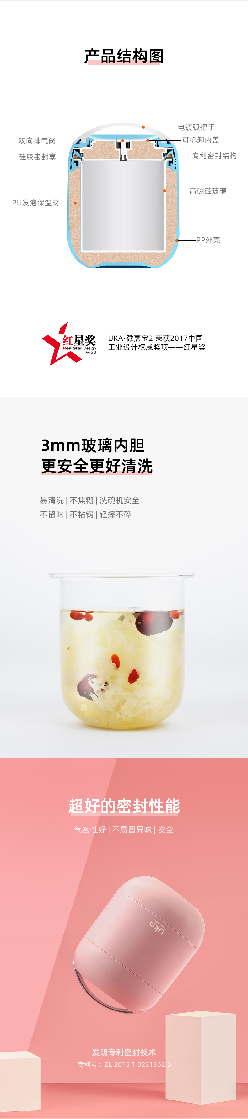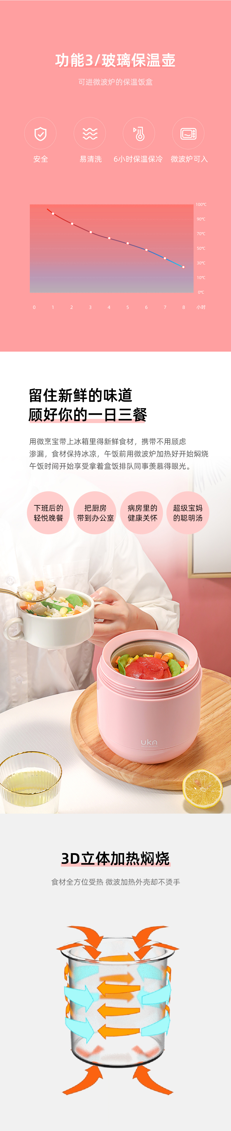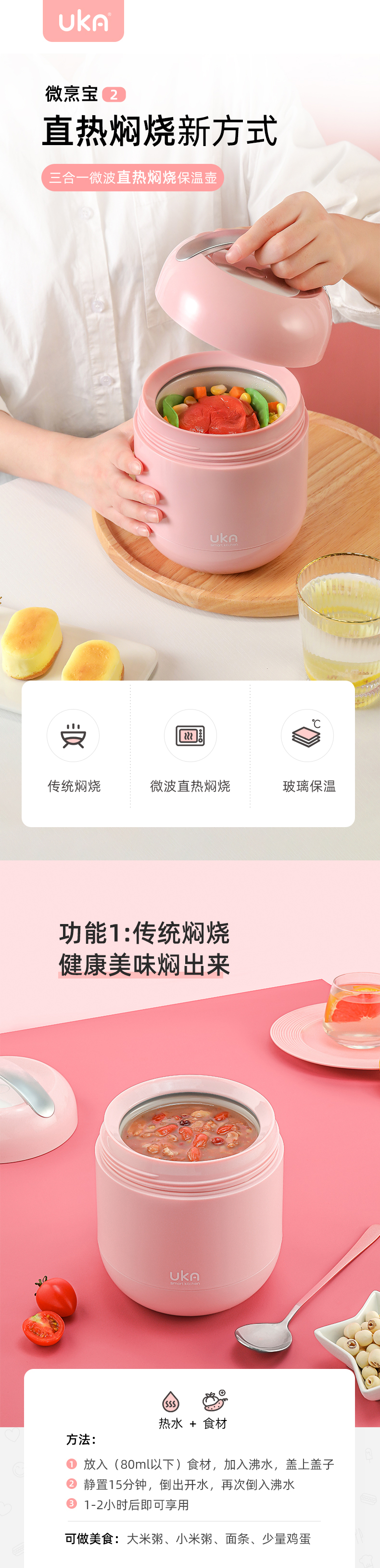 UKA微烹宝2代微波直热保温料理煲保温饭盒焖烧杯焖烧壶锅罐(玻璃内胆,微波炉可入)