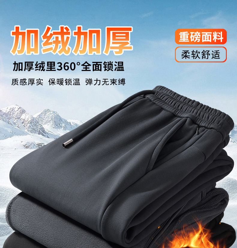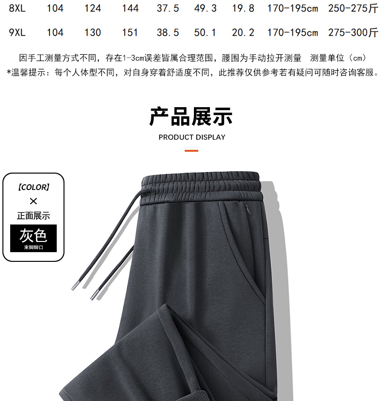 【双口袋】【加绒】【特大码】【DCS】大依优型大码休闲裤直筒束脚运动裤弹力松紧腰弹力加肥加大宽松大码男士长裤