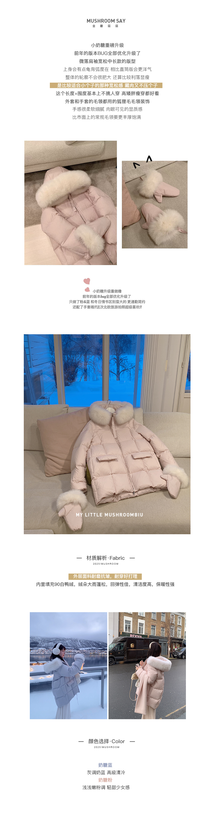 金蘑菇菇 棉花小奶糖 / 90白鸭绒羽绒服狐狸毛毛领