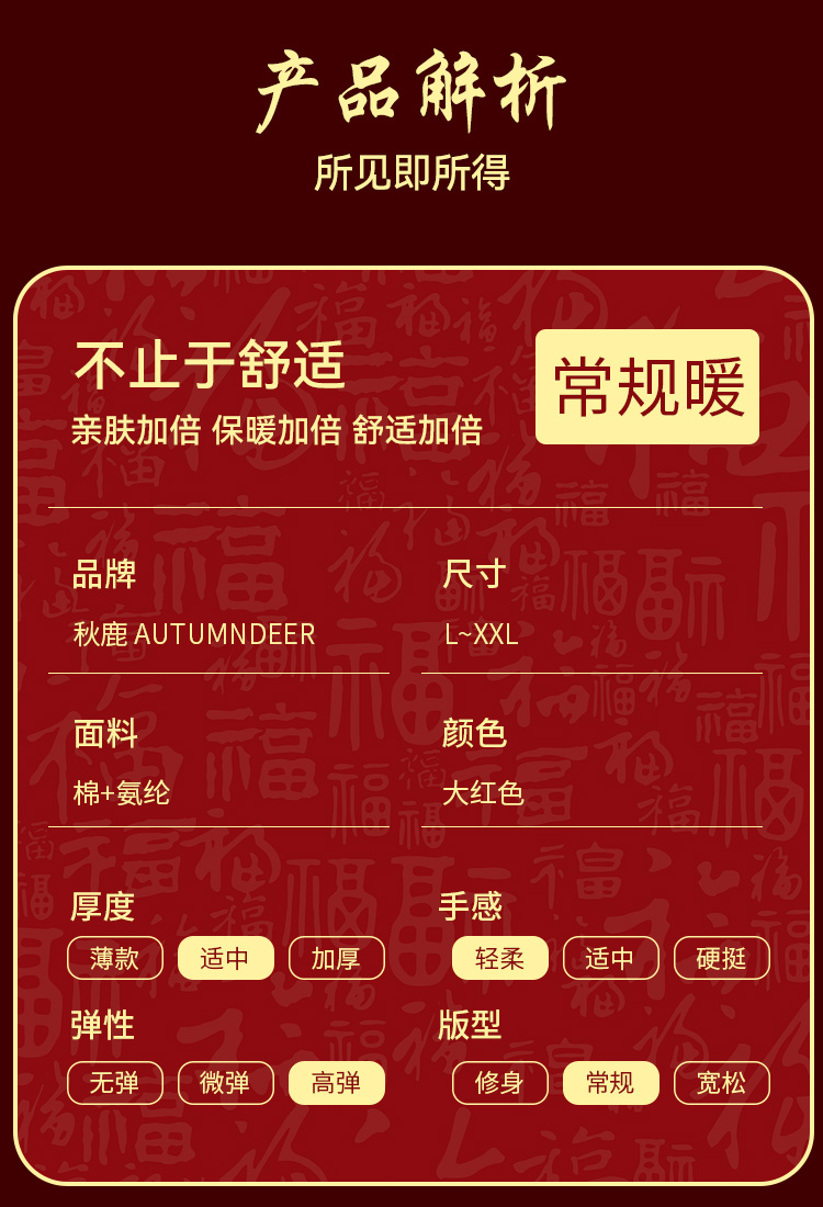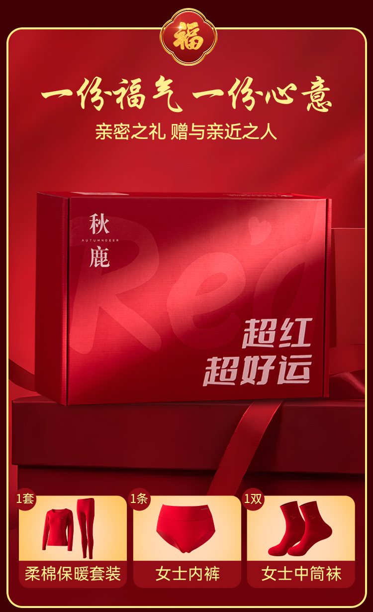 【清仓捡漏】【女士棉氨套装+内裤+福袜】【M-2XL】【秋鹿】女士本命年礼盒套装(95%棉5%氨纶)