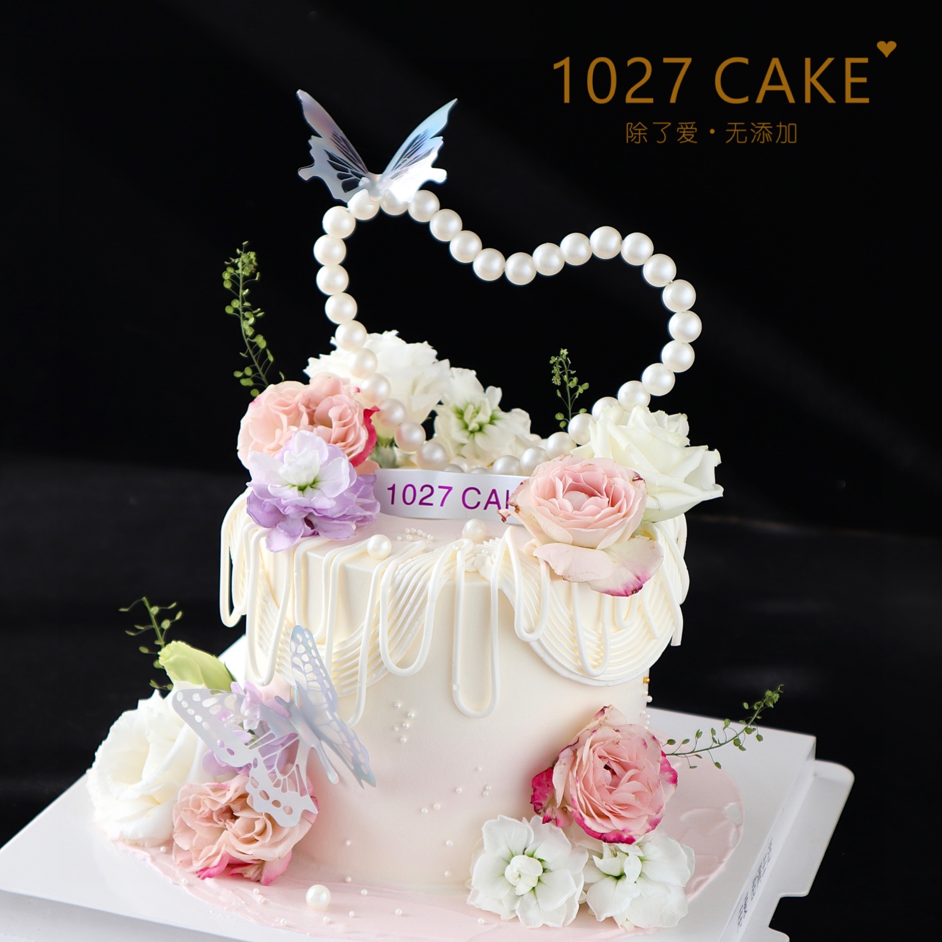 1027CAKE | 鲜花蛋糕 爱心珍珠(需提前2-3天预定)