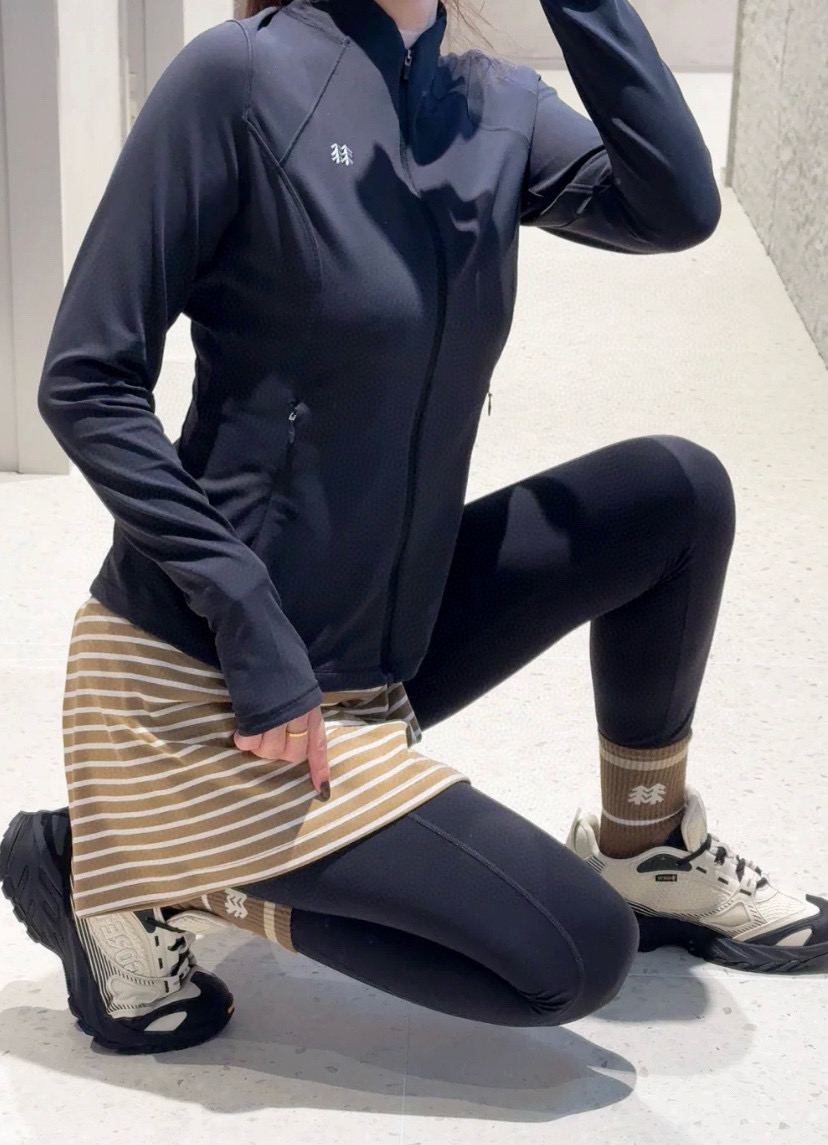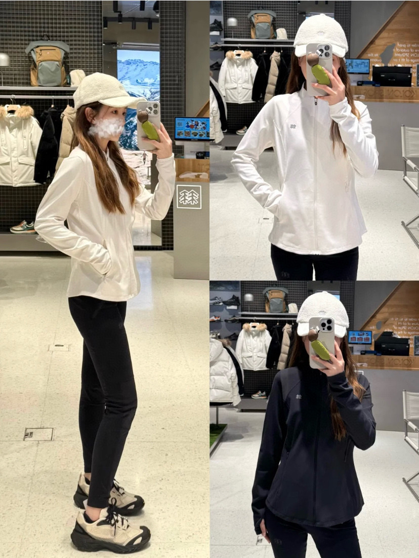 两棵树修身款都是立体剪裁长袖,分割线就是如此设计的‼️运动起来会更自如,跑步能防晒手掌,同时袖长过档,更显腿长