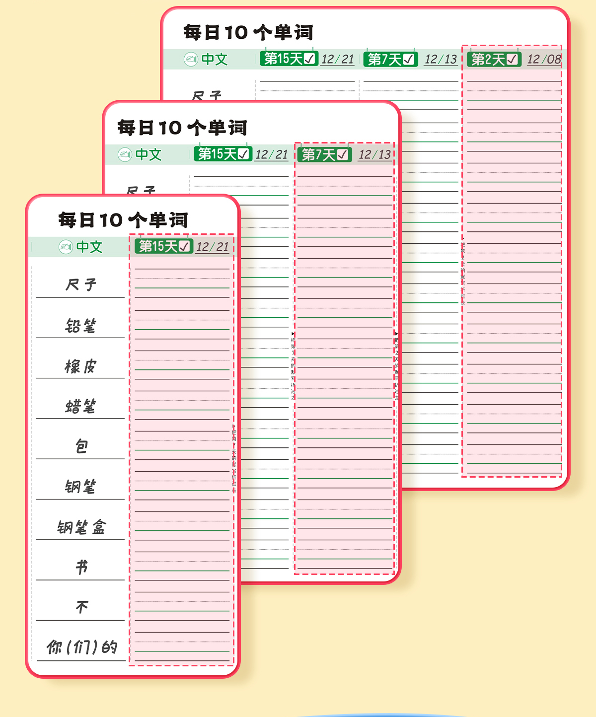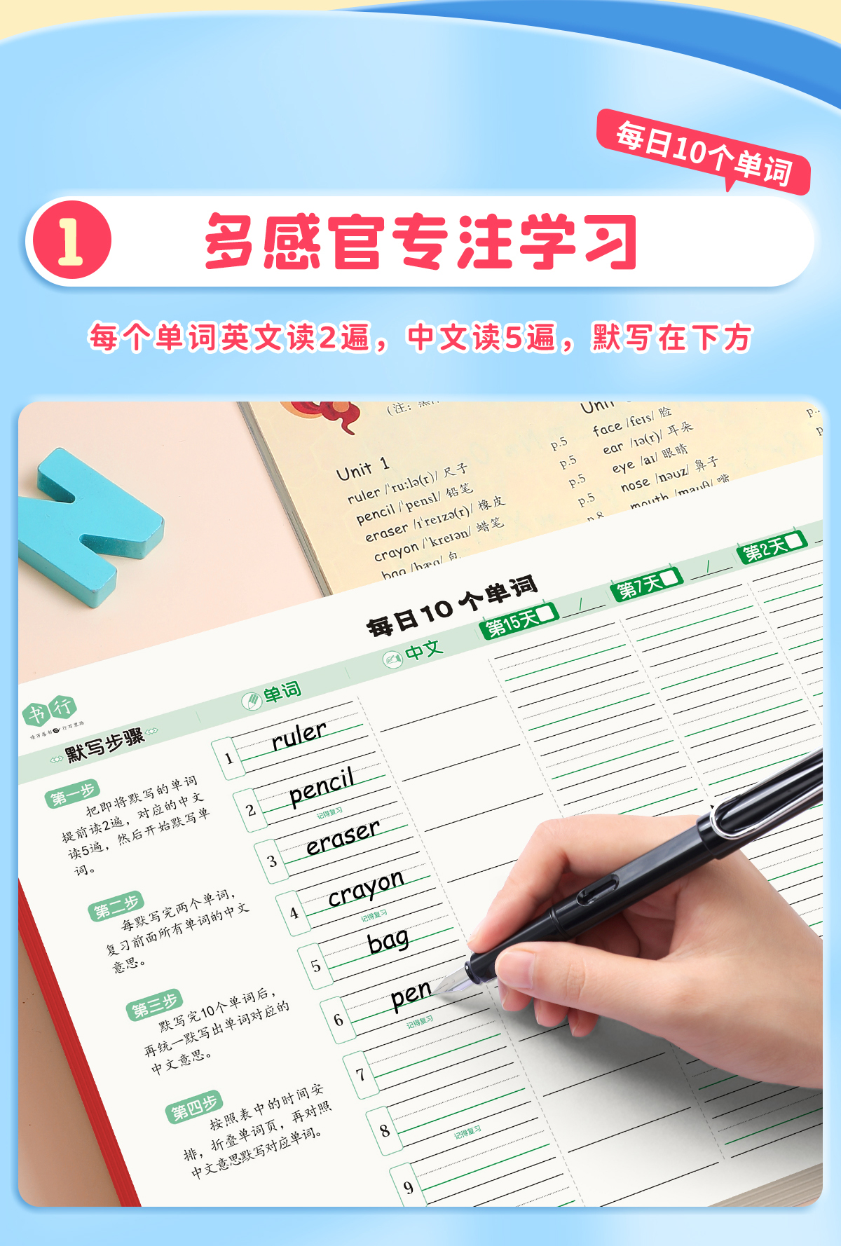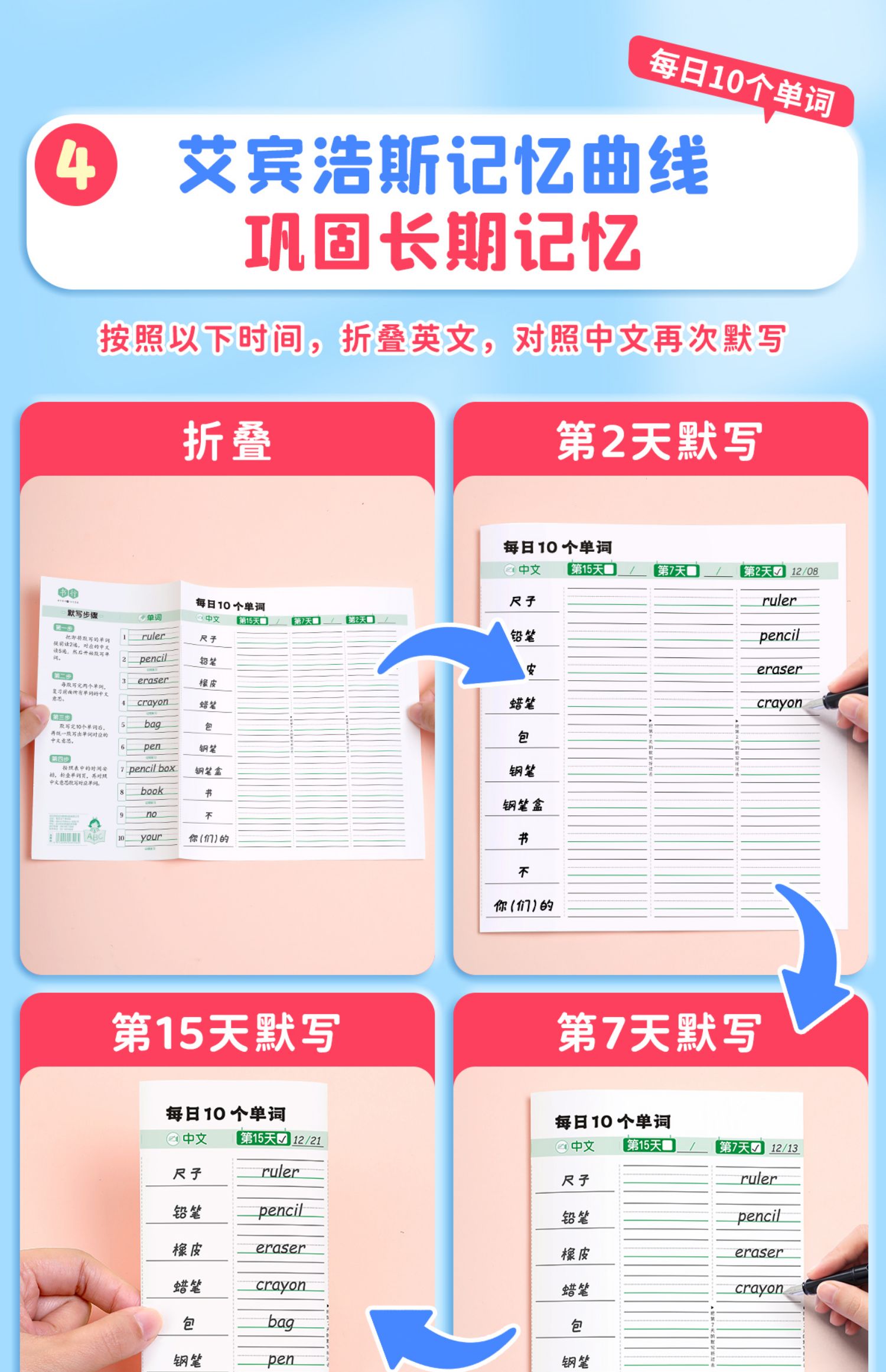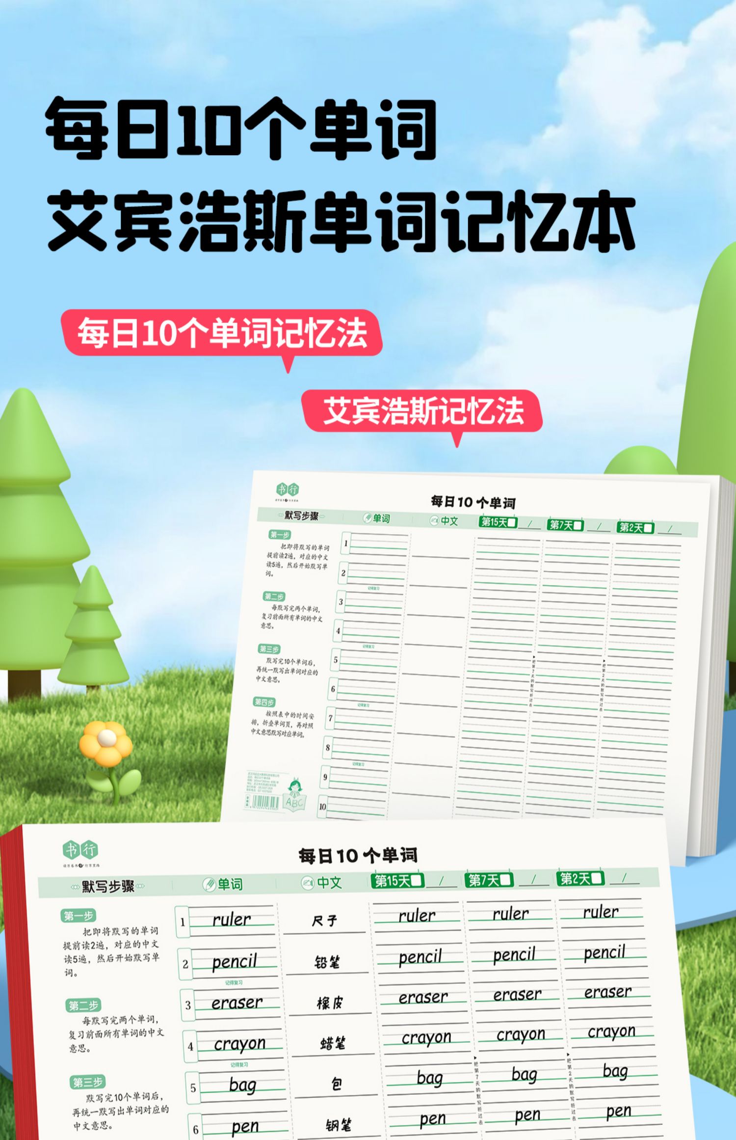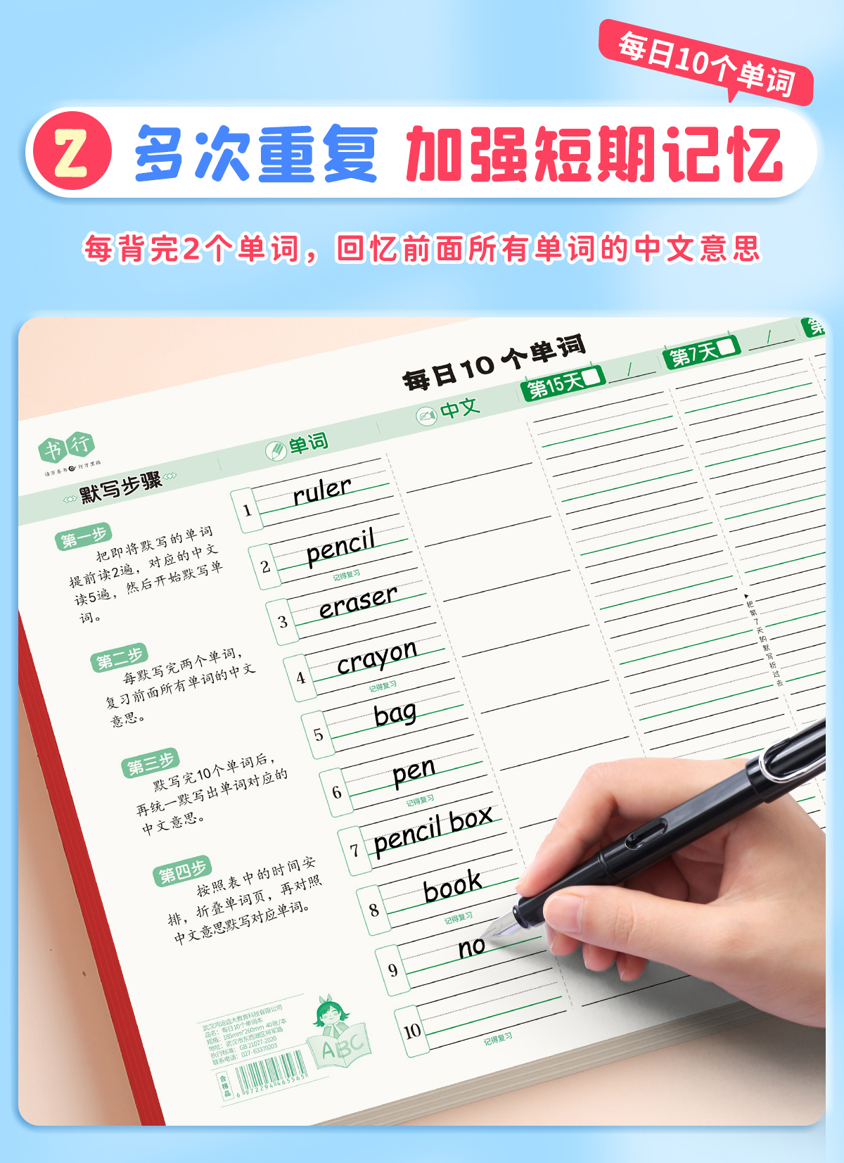 书行英语单词本记忆本小学生初中生单词记背神器艾宾浩斯遗忘记忆曲线单词默写本三四年级背单词每日10词