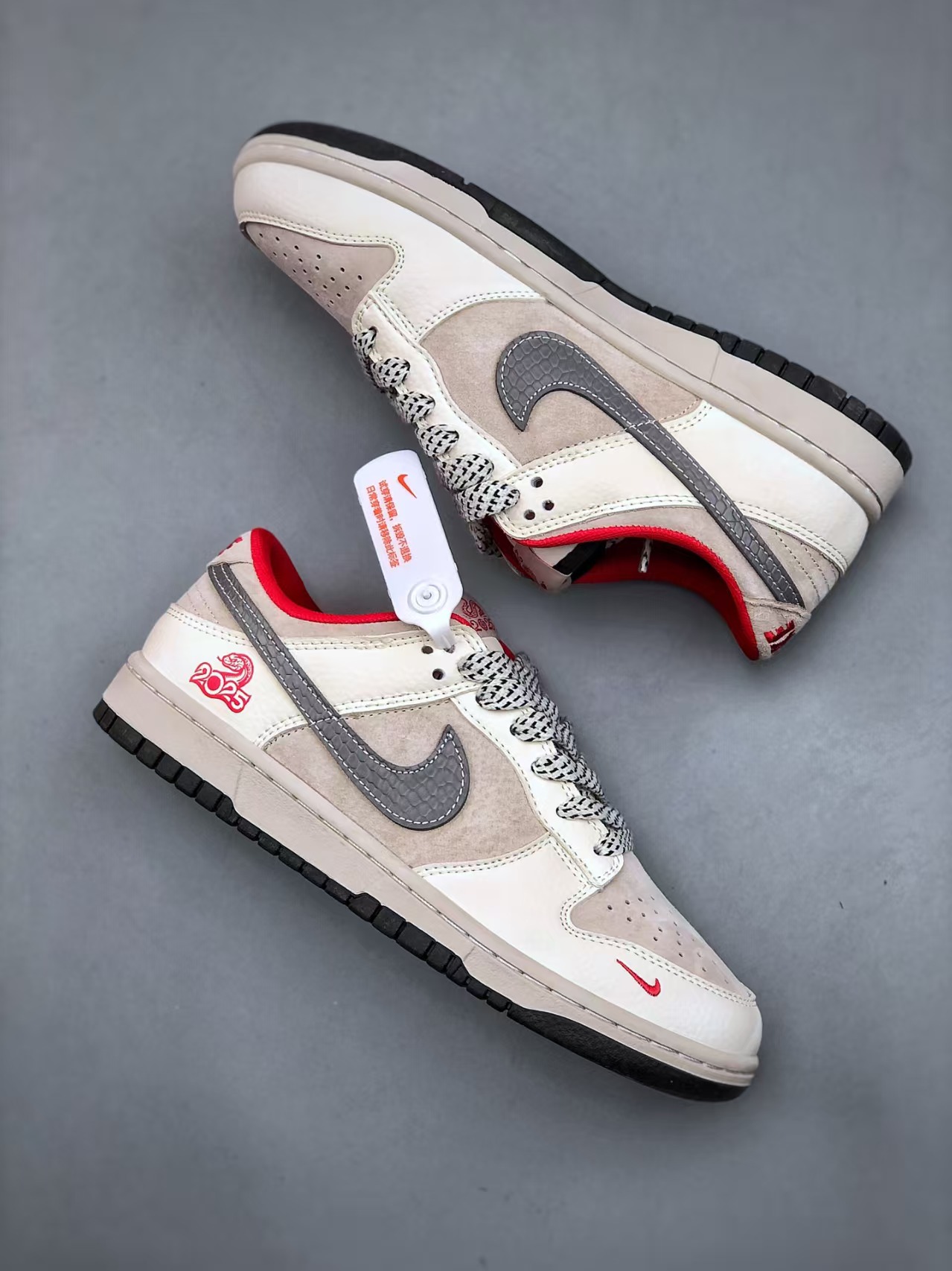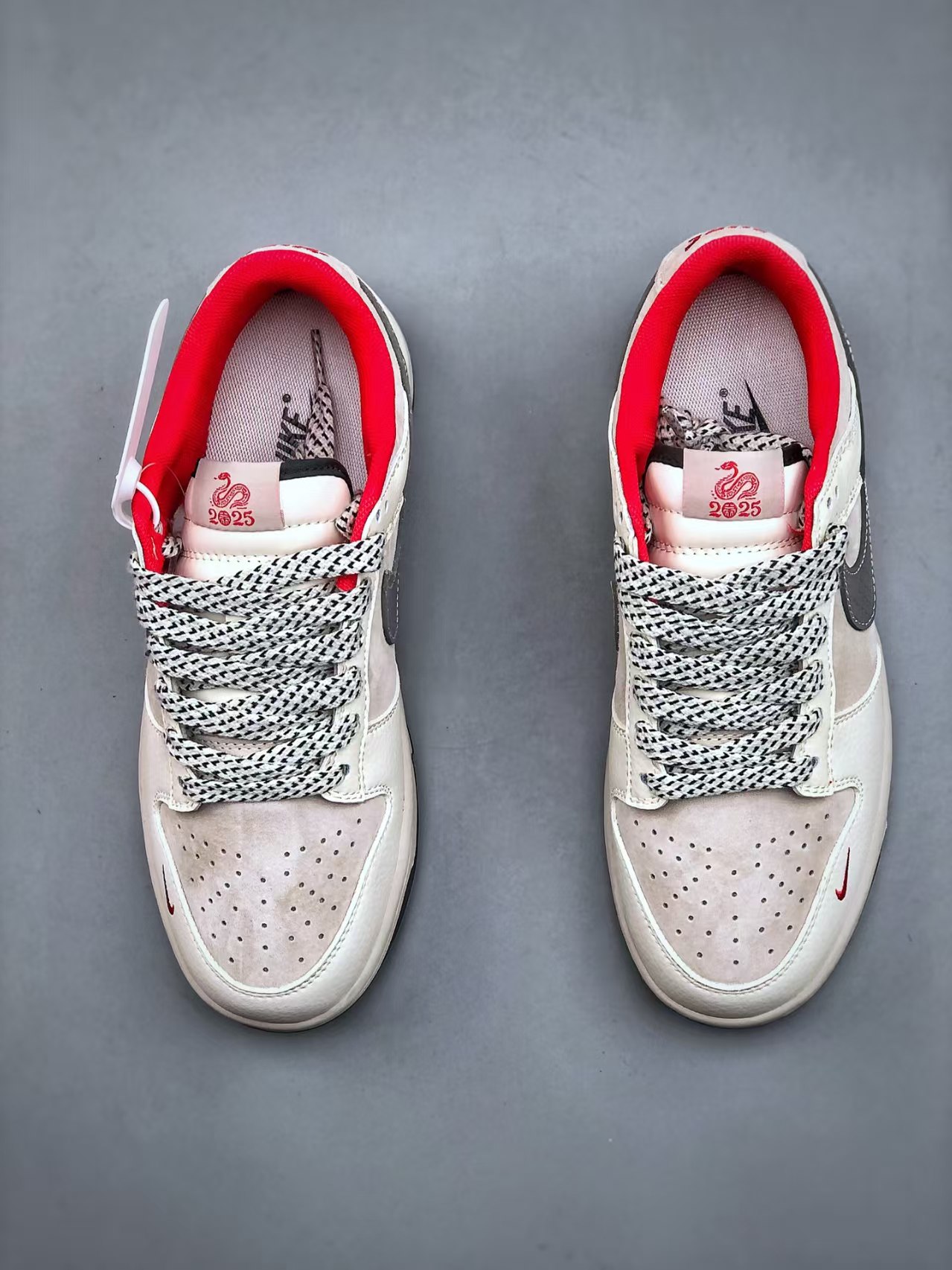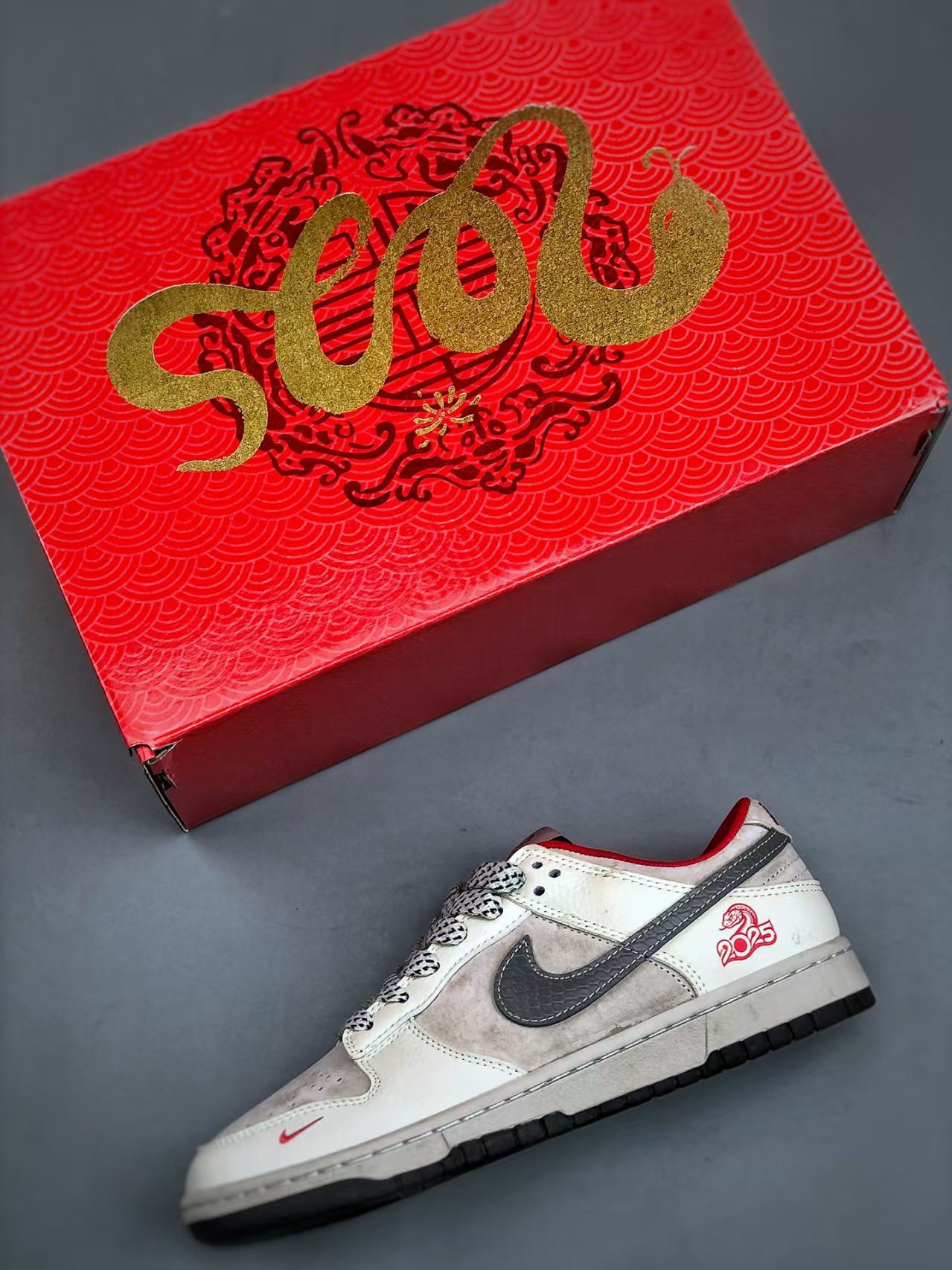 蛇年🐍限量发售!#蛇年先行者公司级 # SB Duck low“白灰蛇鳞高奢蛇年定制款” 个性的设计风格以及品牌的经典元素 使其成为一双具有独特身份和价值的鞋子 清新而立体的外观加上联名标识更突出了其独特身份 这种配色方案显示出活力和时尚感 在视觉上引人注目 鞋身的质感和细腻的细节处理使其显得高端而格调十足 这款“SB”联名是设计与创意完美结合 融合多方的个性风格是一款备受瞩目的潮流鞋款 低帮休闲板鞋 定制鞋盒 大厂纯原品质出货 高清洁度 皮料切割干净无任何毛边 细节完美