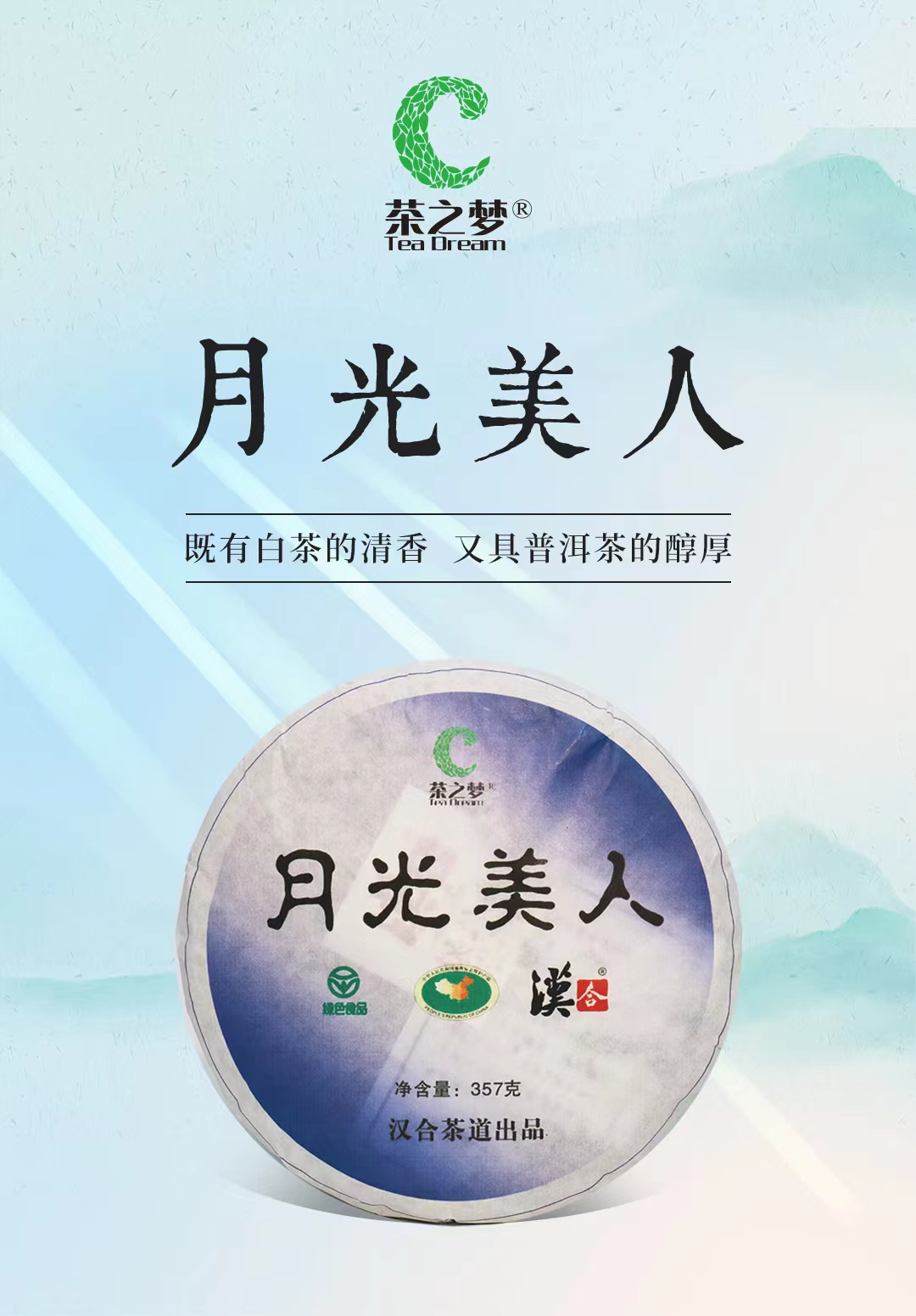 茶之梦“月光美人”,也被称为月光白茶、月光茶。茶之梦月光美人原料产于云南省澜沧景迈茶山,其采摘手法及制作工艺独特,每批茶叶的粗制要在晚上采摘,采茶在晚上12点以后到早上太阳出来之前代露水采摘,要求是一芽一叶;采回的茶在最短的时间内在空旷避光阴凉的大房地板上一条一条的人工摆放自然阴干(不能见阳光),一定要在太阳出来之前完成粗加工,叶片黑白阴阳面,口感滋味,香气,功效等均贯穿着中国道教、佛教中的“阴”,故月光白又叫太乙茶。