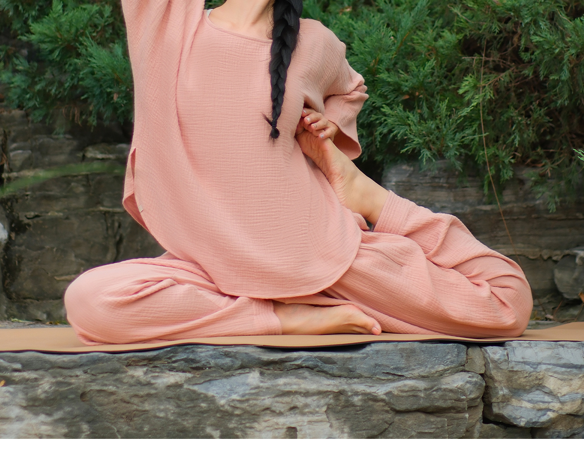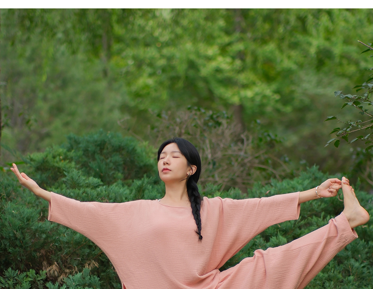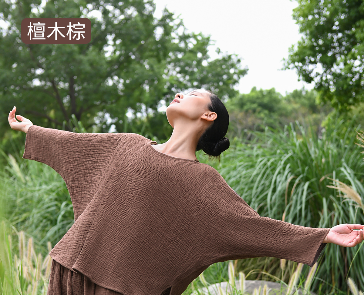 爱暇步天然棉纱瑜伽服套装短袍子禅意瑜伽上衣2025秋新款宽松罩衫 A25342C