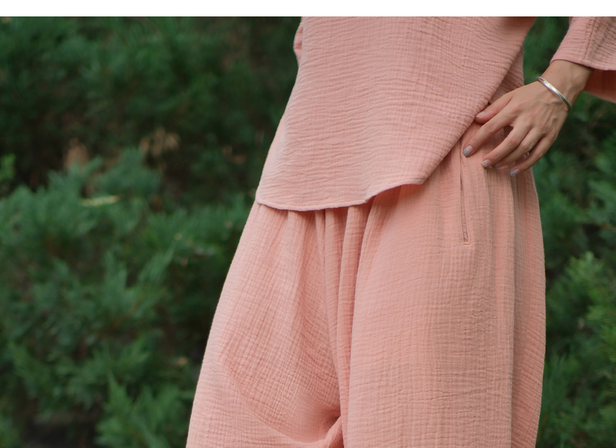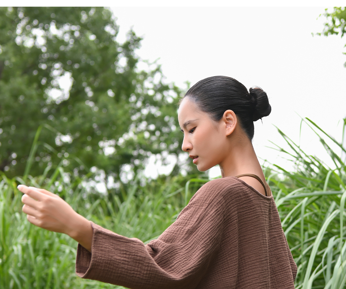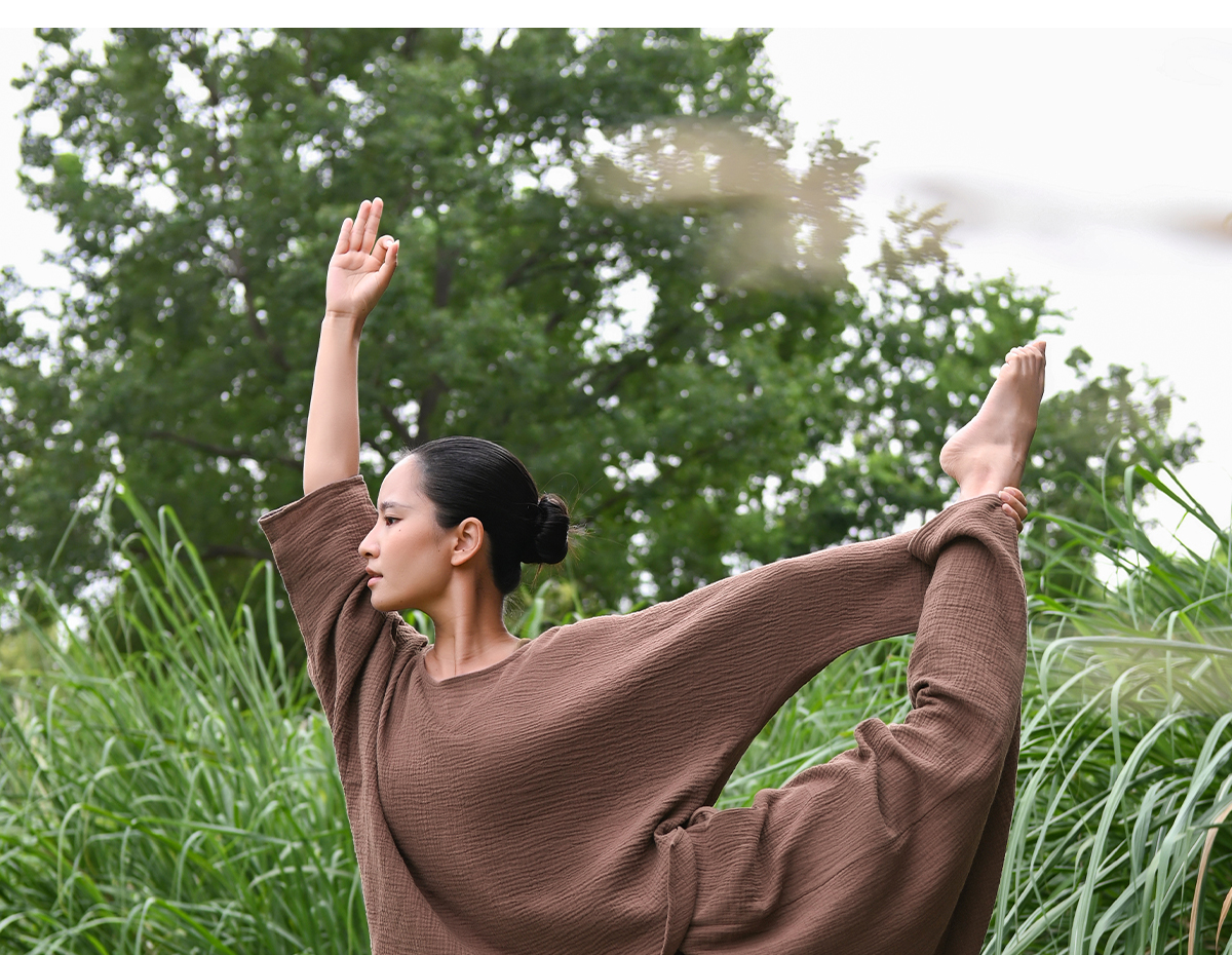 爱暇步天然棉纱瑜伽服套装短袍子禅意瑜伽上衣2025秋新款宽松罩衫 A25342C