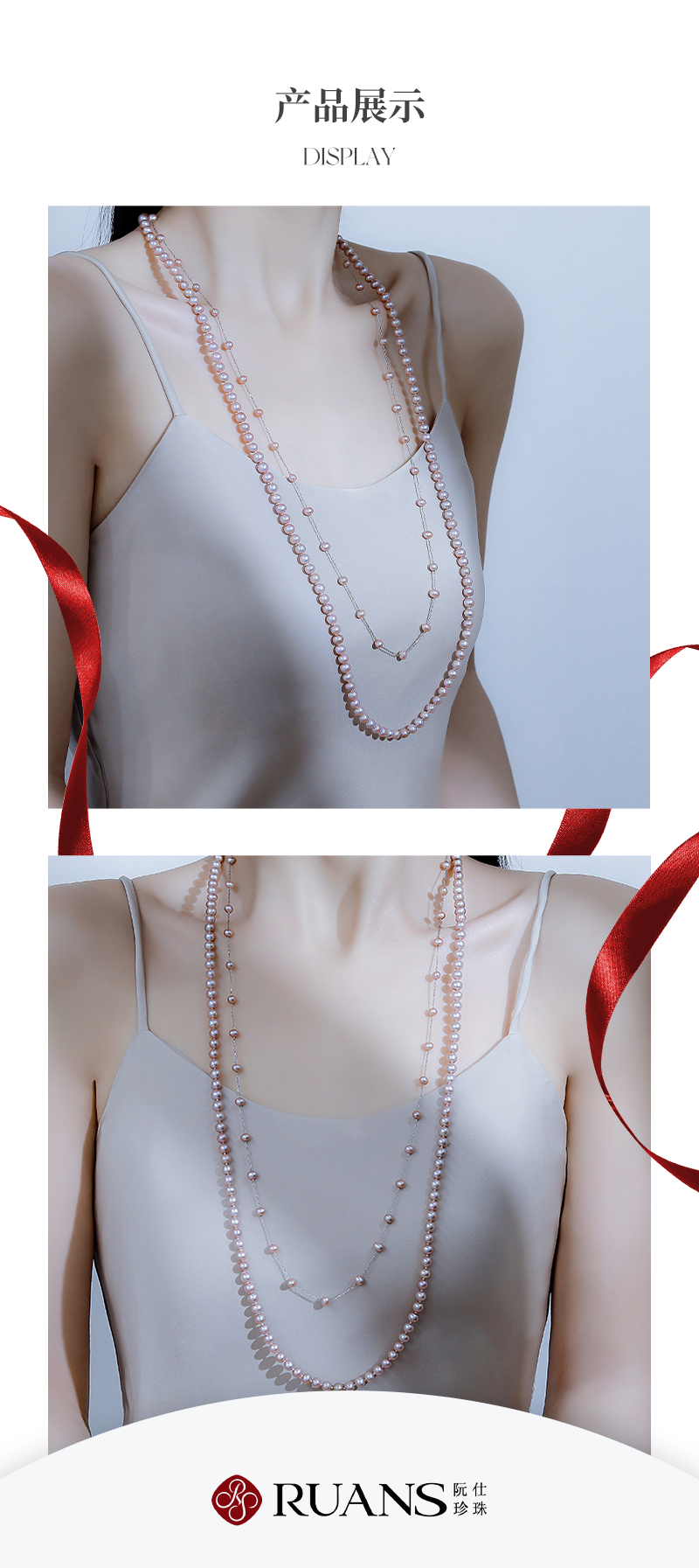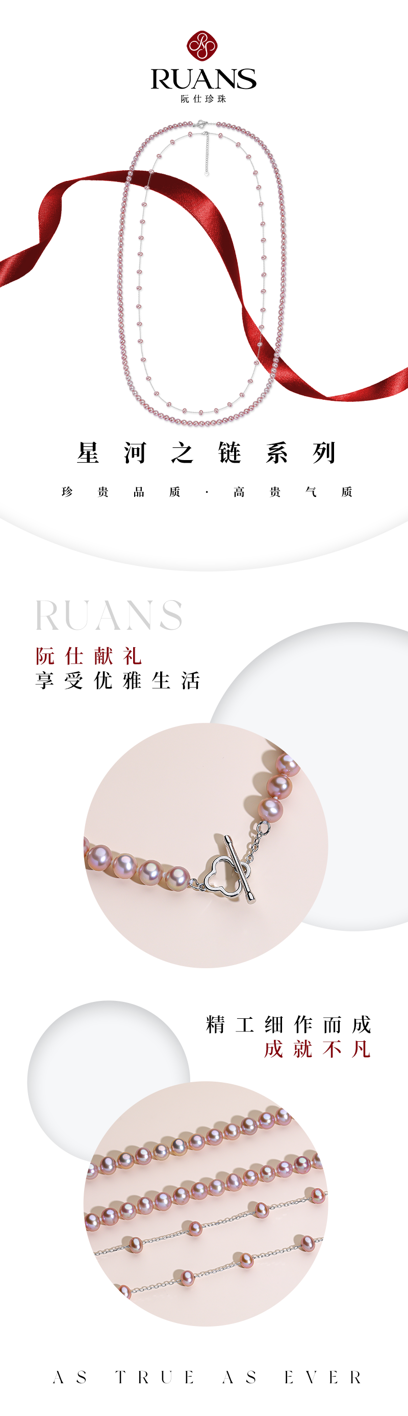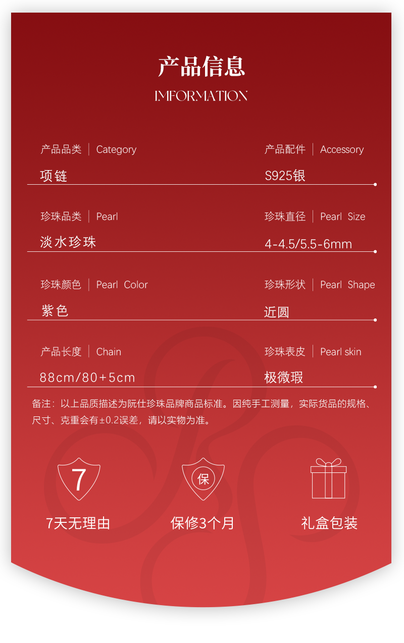 阮仕珍珠 星河之链(紫)系列S925银淡水珍珠长链 4-4.5/5.5-6mm 近圆 极微瑕 极强光