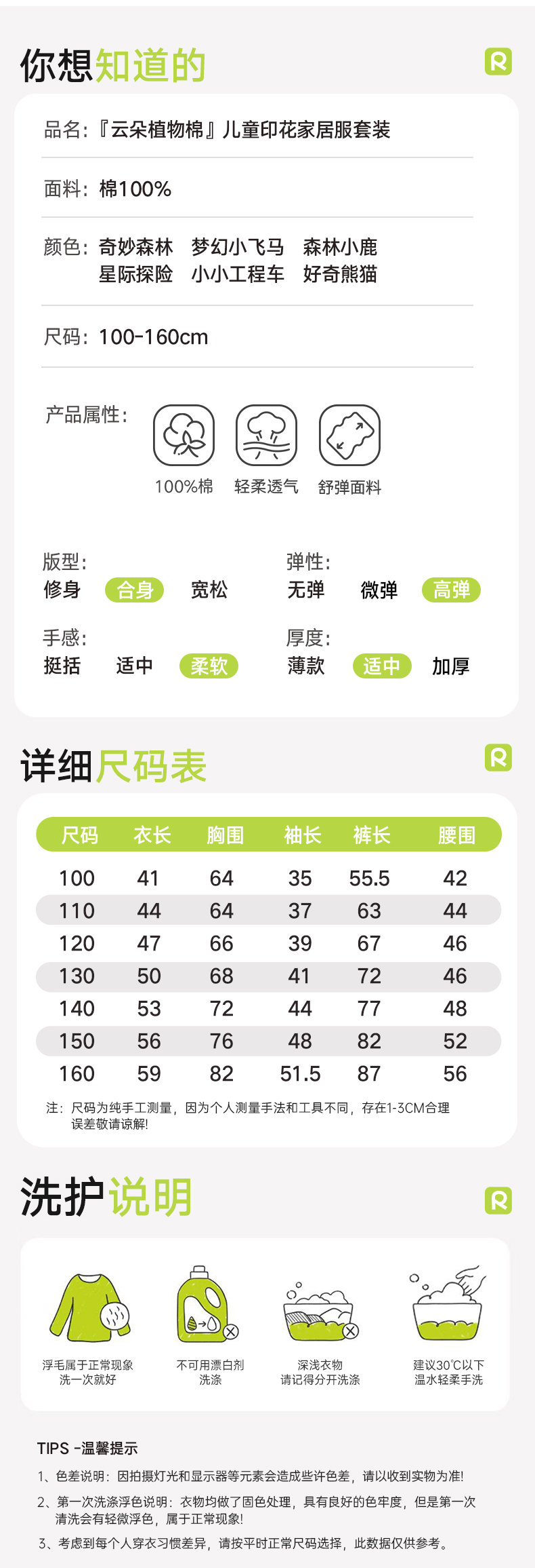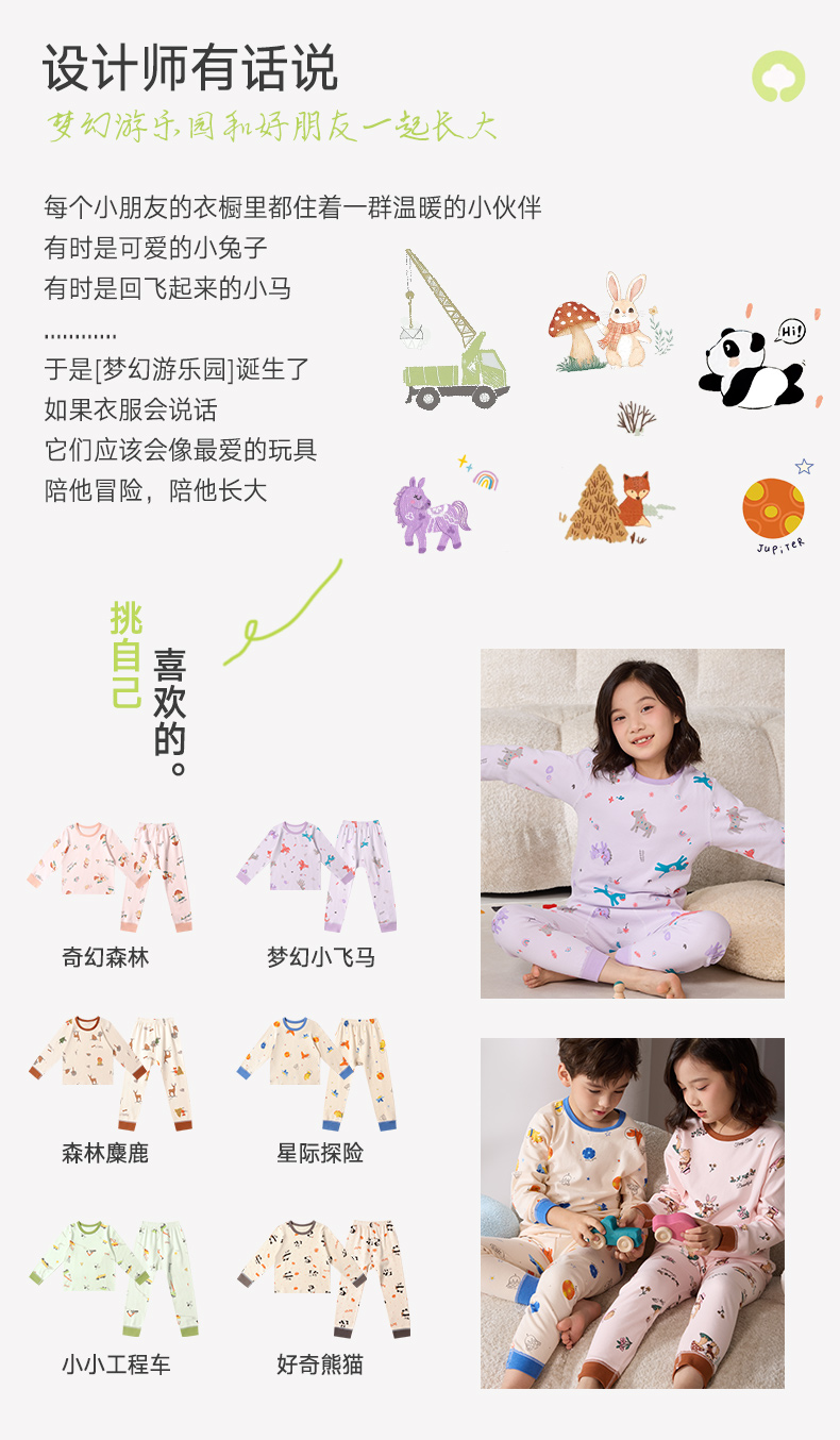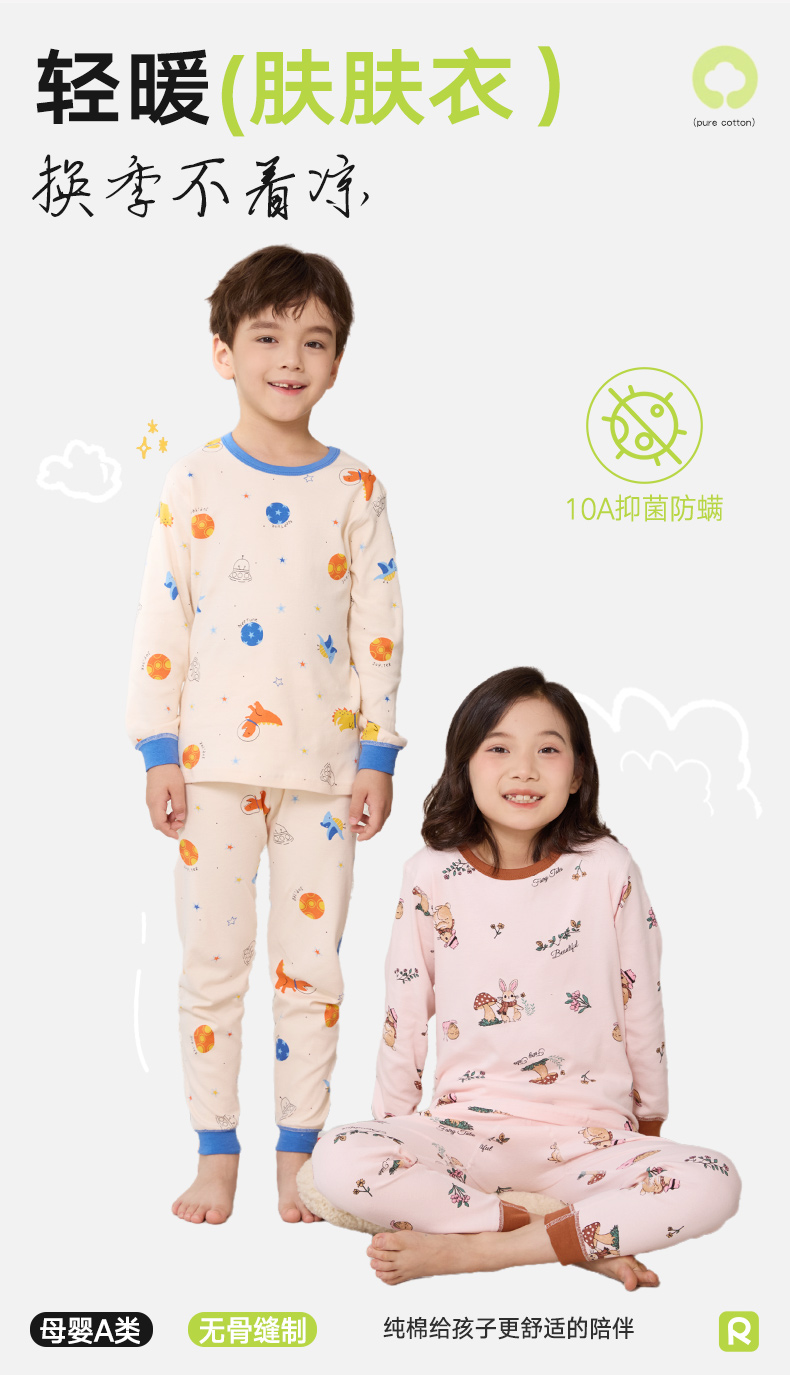 【E】【69元两套 单套不发】云朵植物棉A类无骨缝制超软糯儿童印花家居服套装100%棉