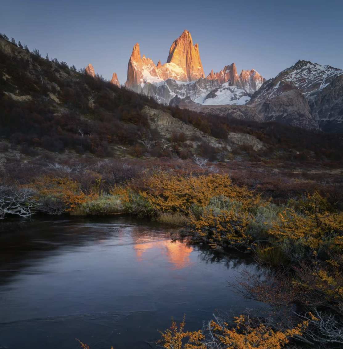 整个百内就像一个超级剧场,主演是冰与山,配角是天、地、云和水,特邀嘉宾是日出和日落,导演当然是大自然。