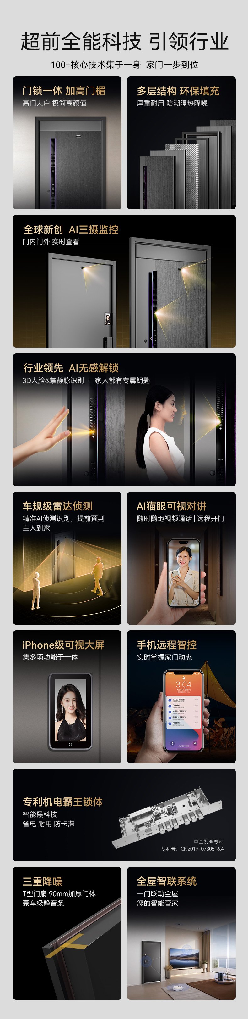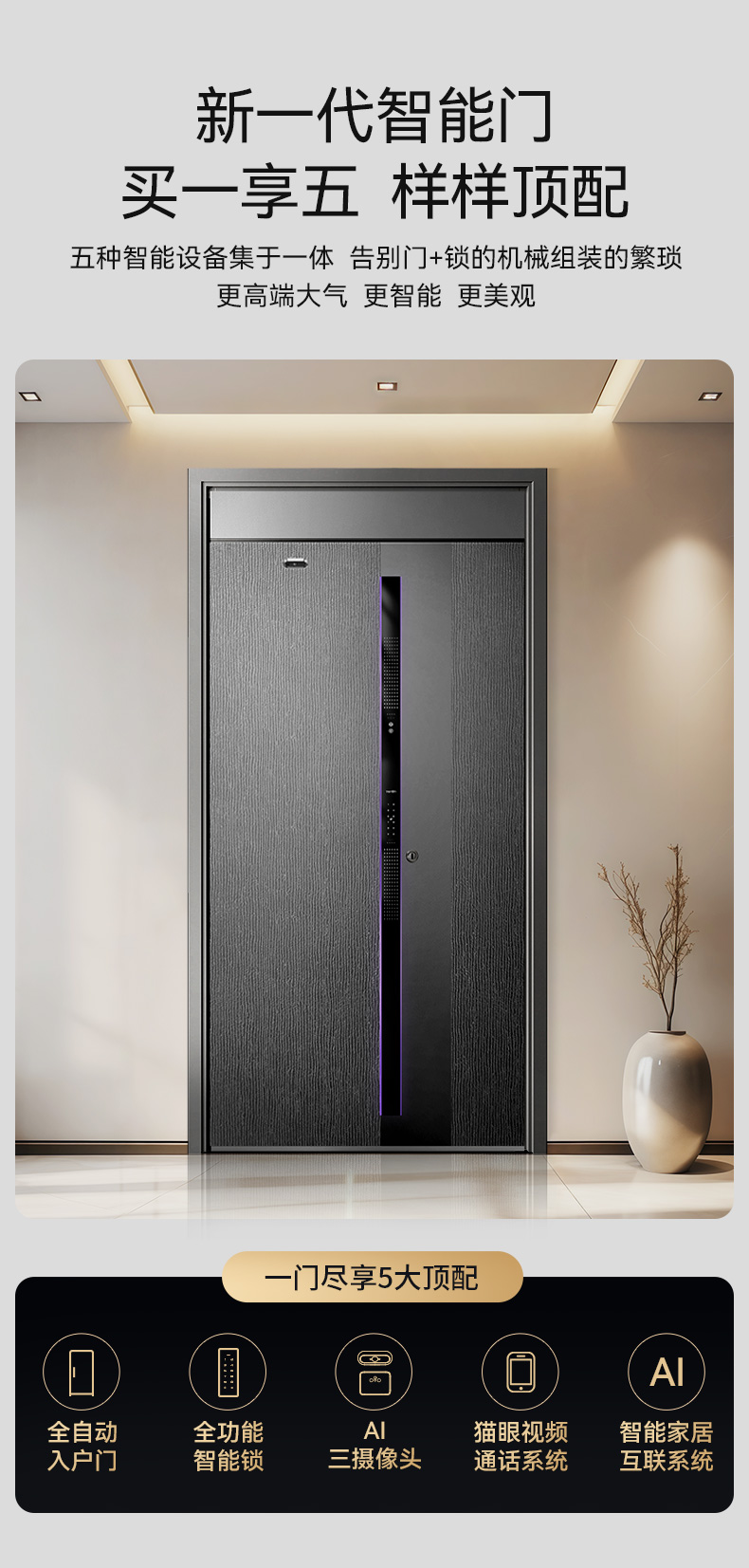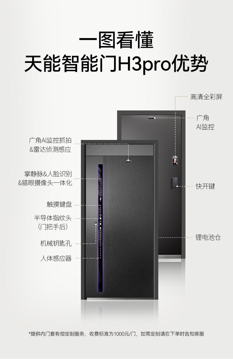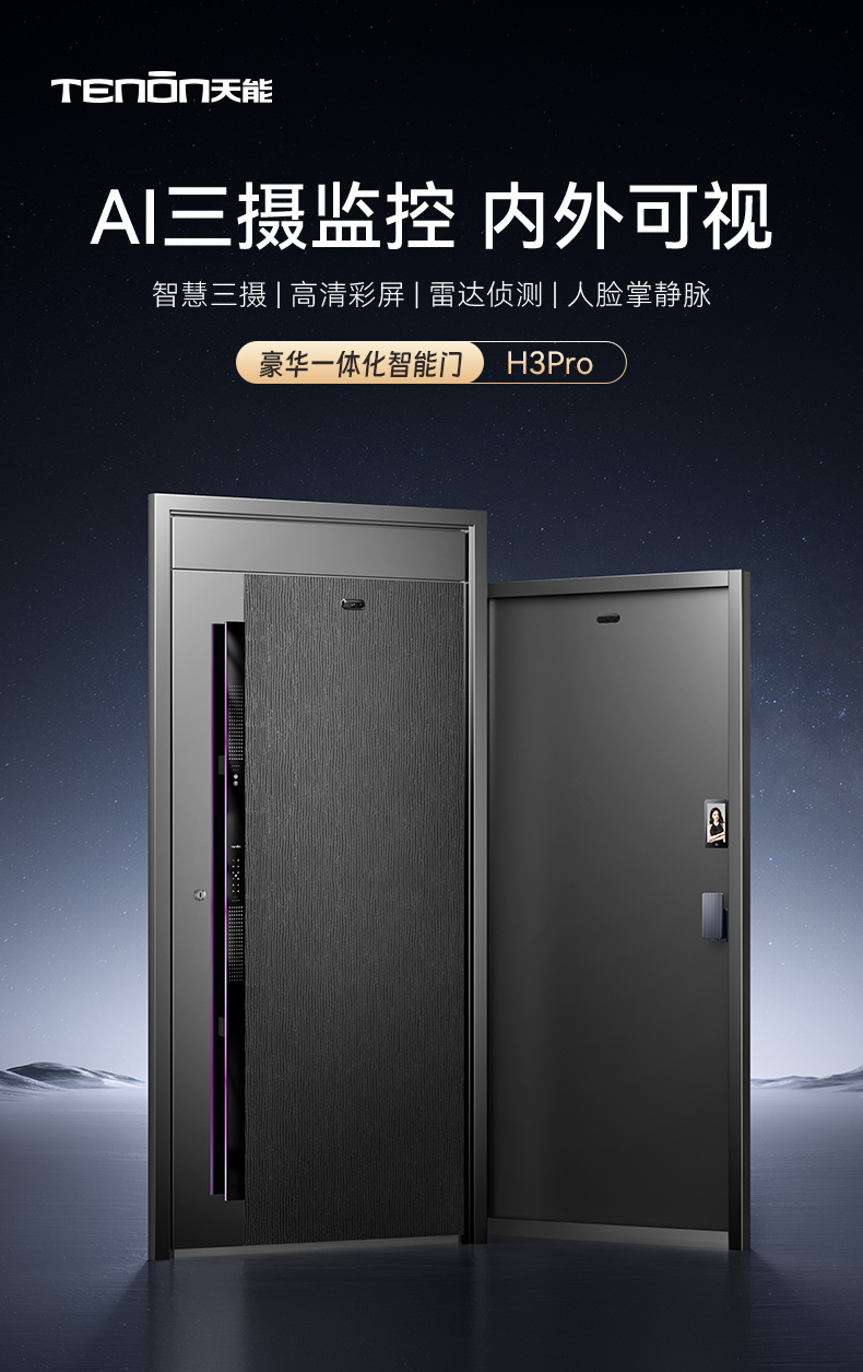 亚太天能智能门H3pro一体化全自动AI三摄监控入户门家用防盗进户门大门
