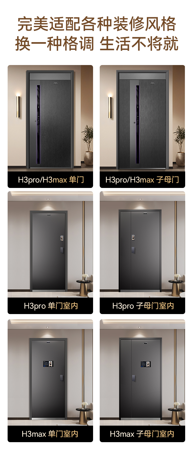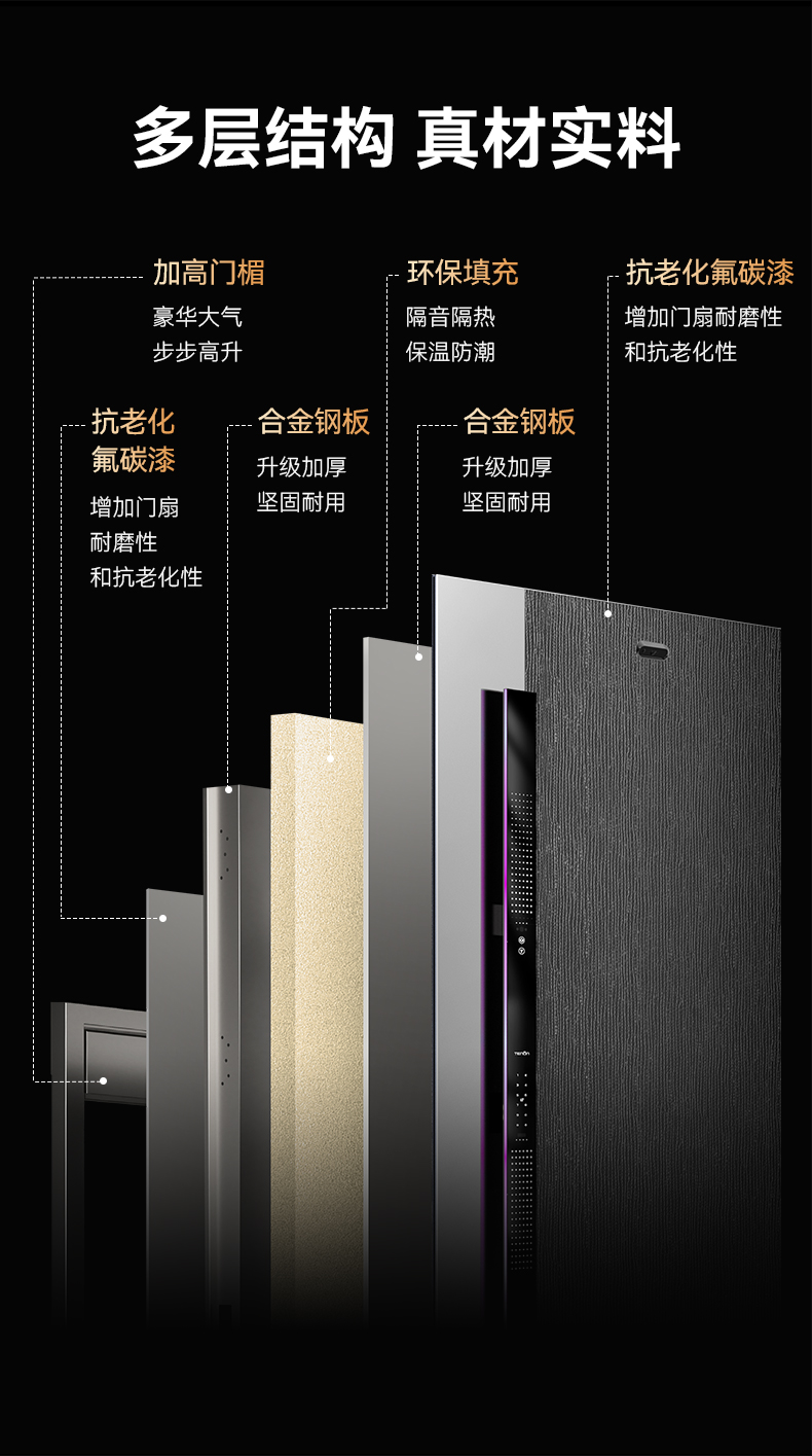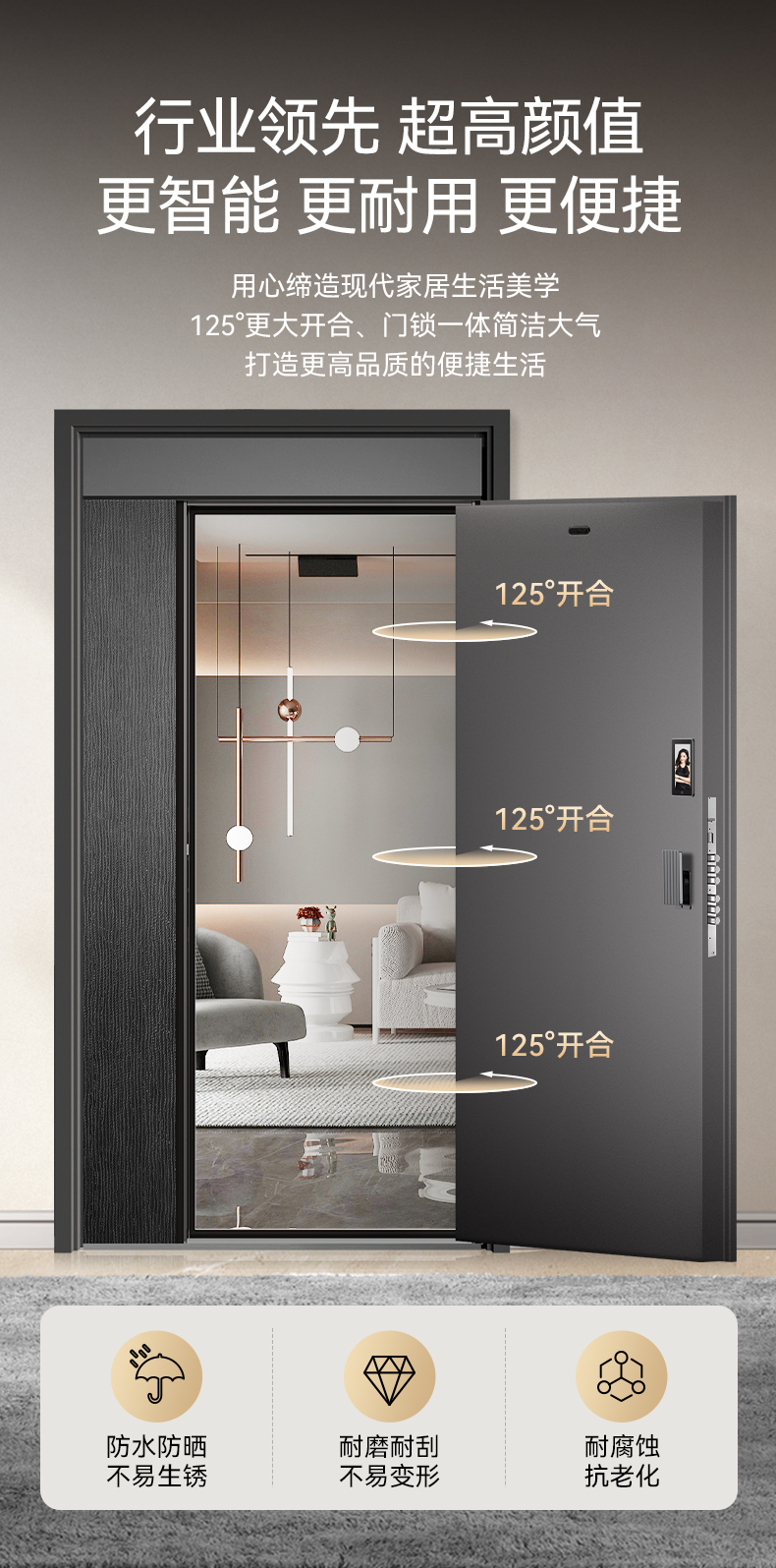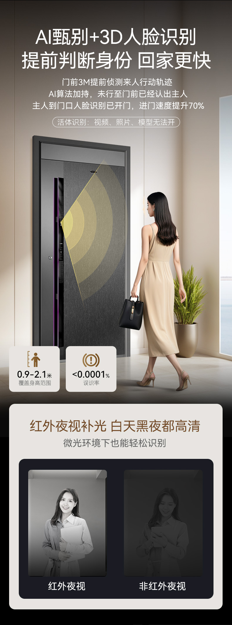 亚太天能智能门H3pro一体化全自动AI三摄监控入户门家用防盗进户门大门