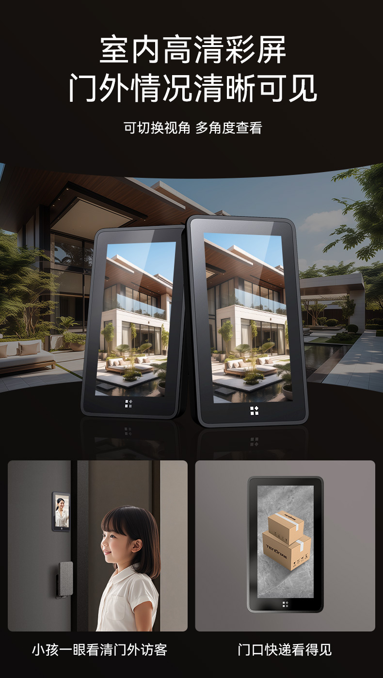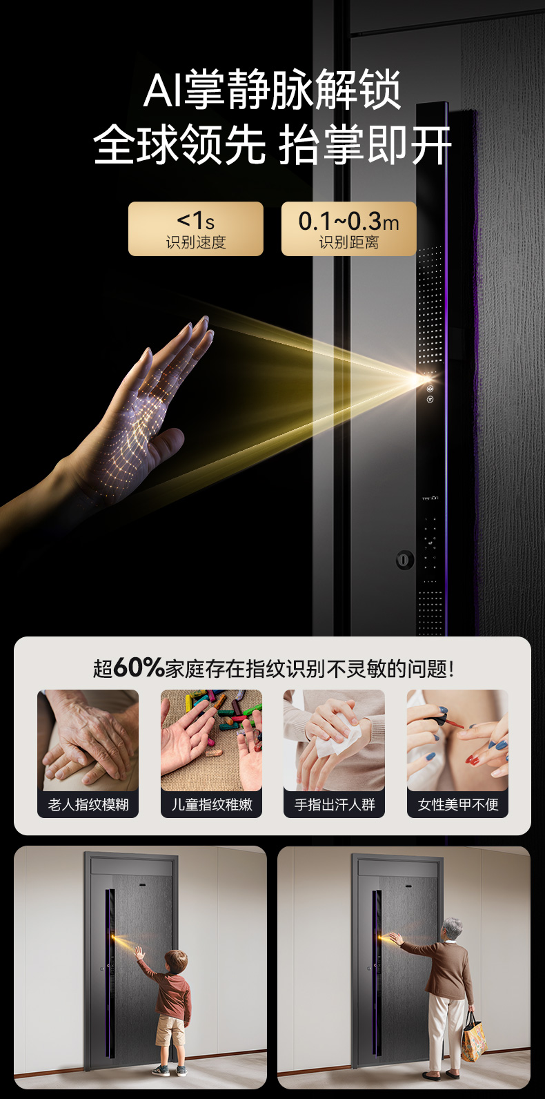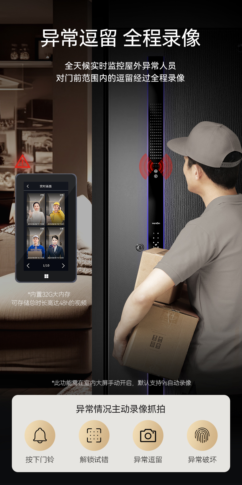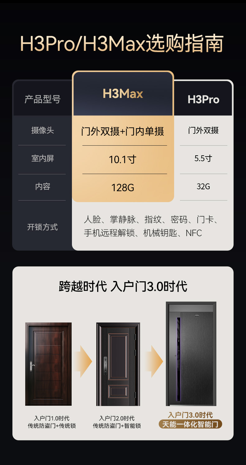 亚太天能智能门H3pro一体化全自动AI三摄监控入户门家用防盗进户门大门