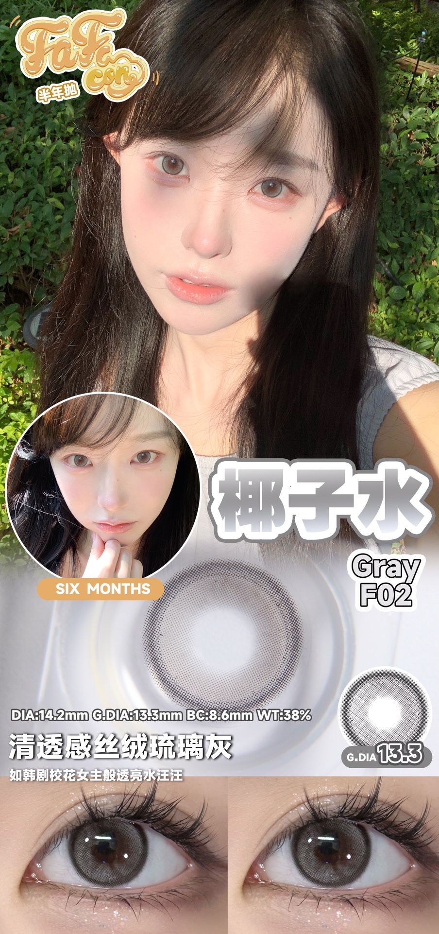 fafacon半年抛 椰子水/海鸥珍珠/软妹币/可爱鬼 14.0-14.2mm 灰蓝粉黑