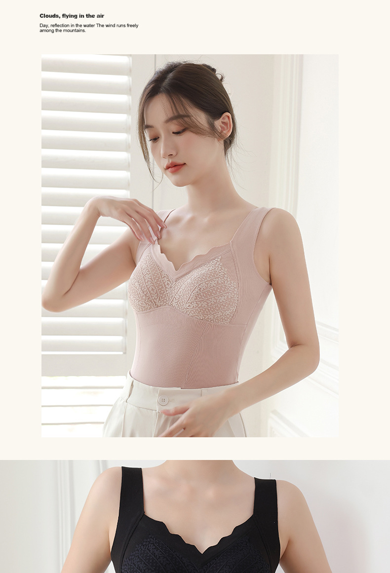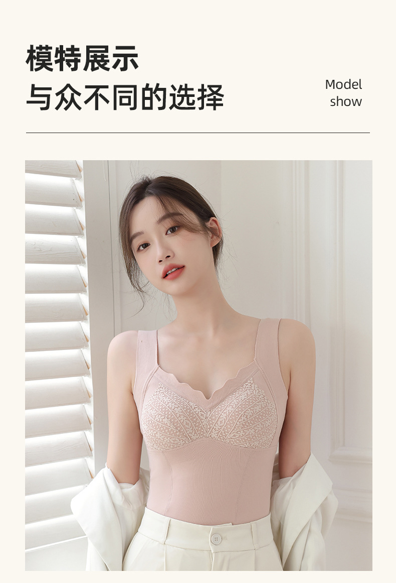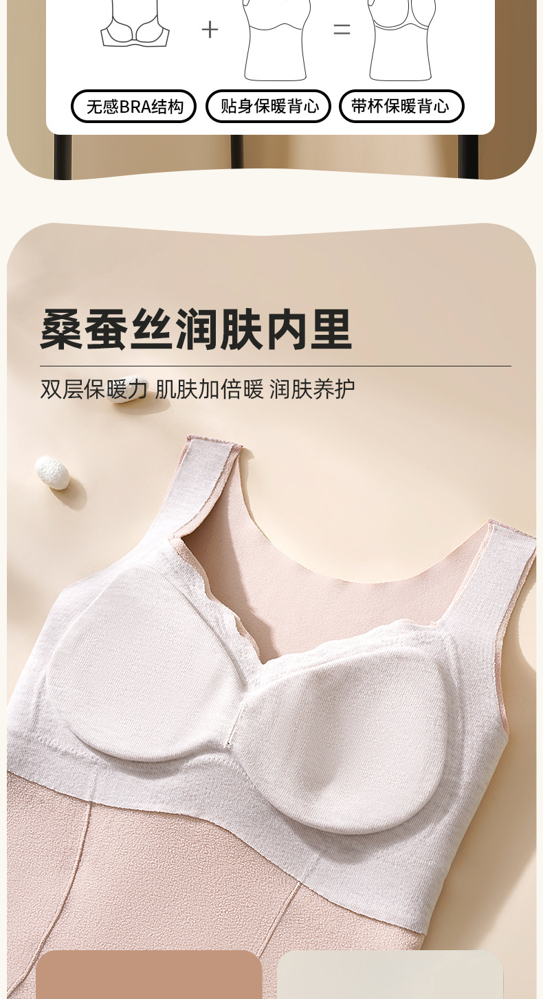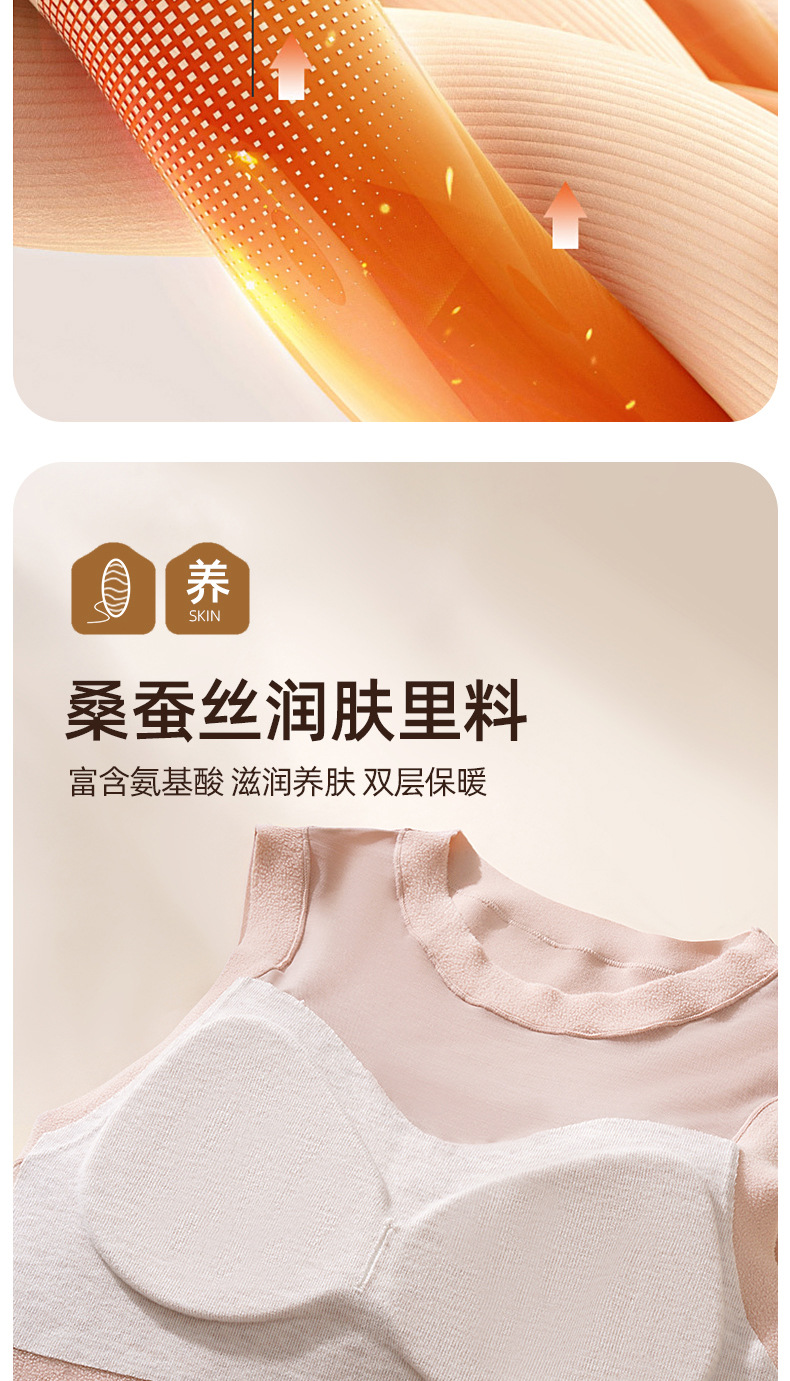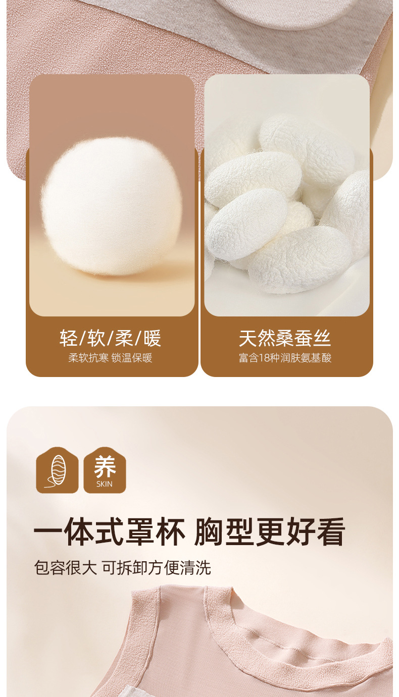 新款小波浪蚕丝保暖背心女自带胸垫修身贴肤保暖打底内穿蕾丝内衣