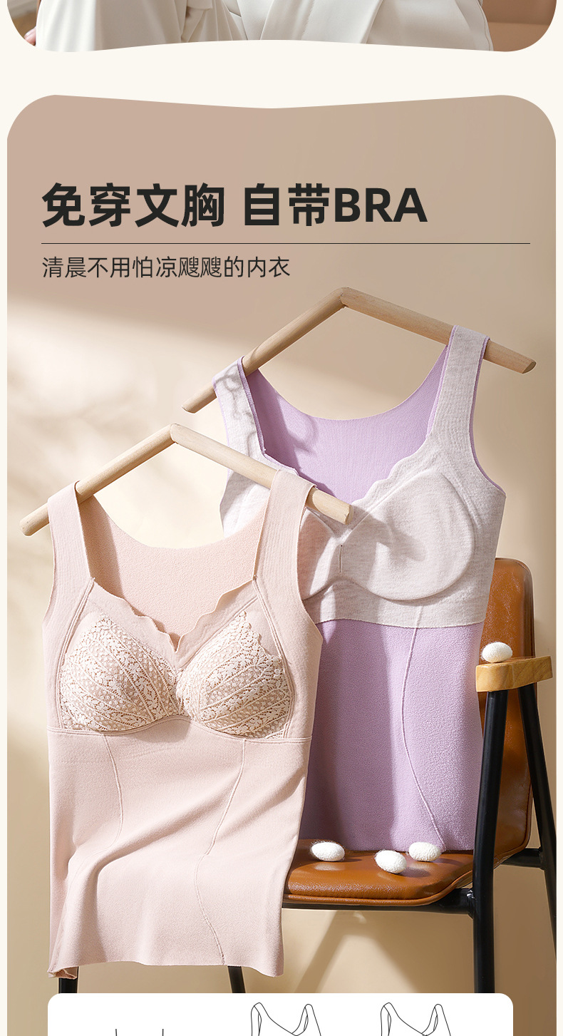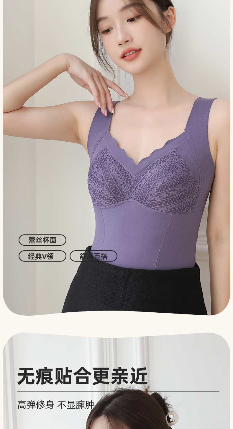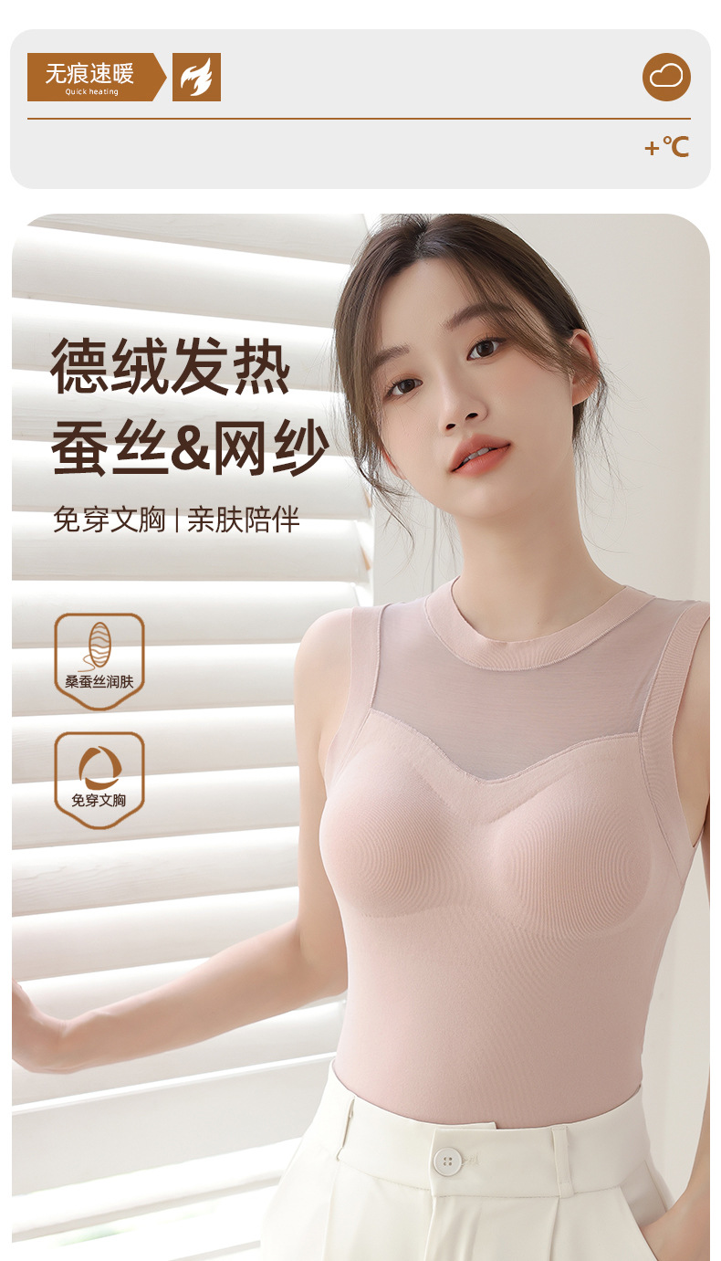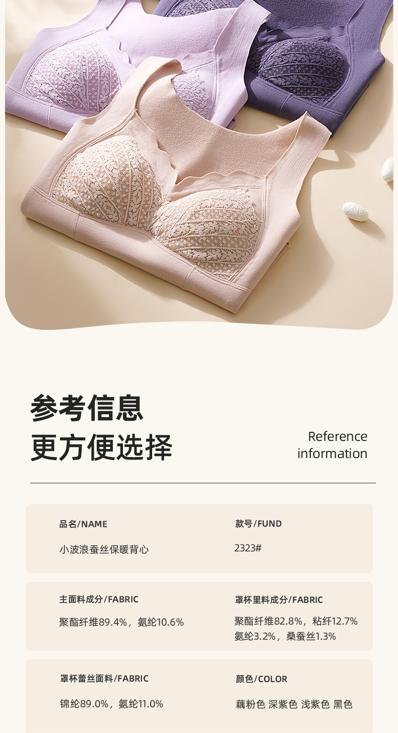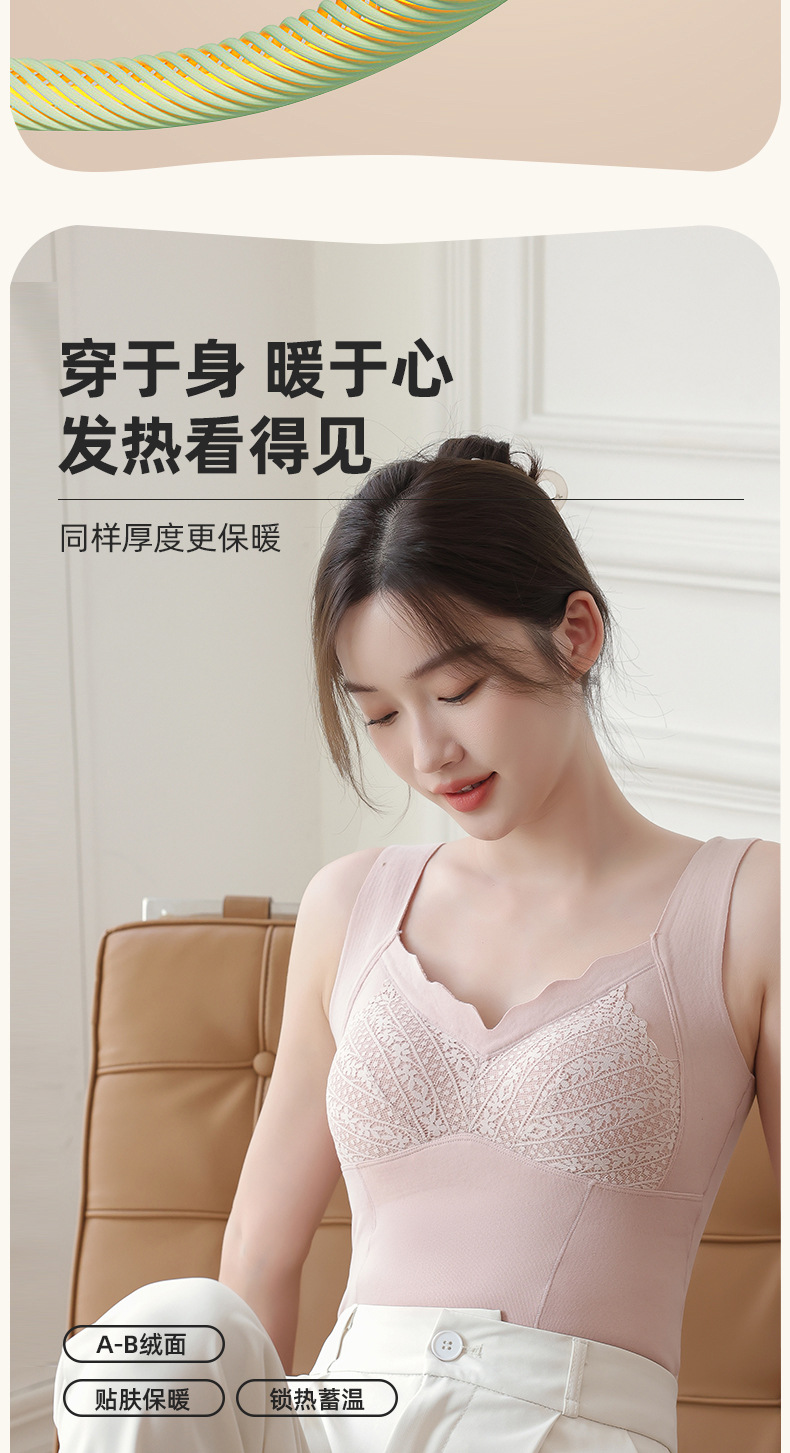 新款小波浪蚕丝保暖背心女自带胸垫修身贴肤保暖打底内穿蕾丝内衣