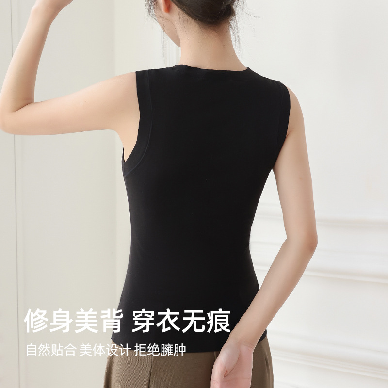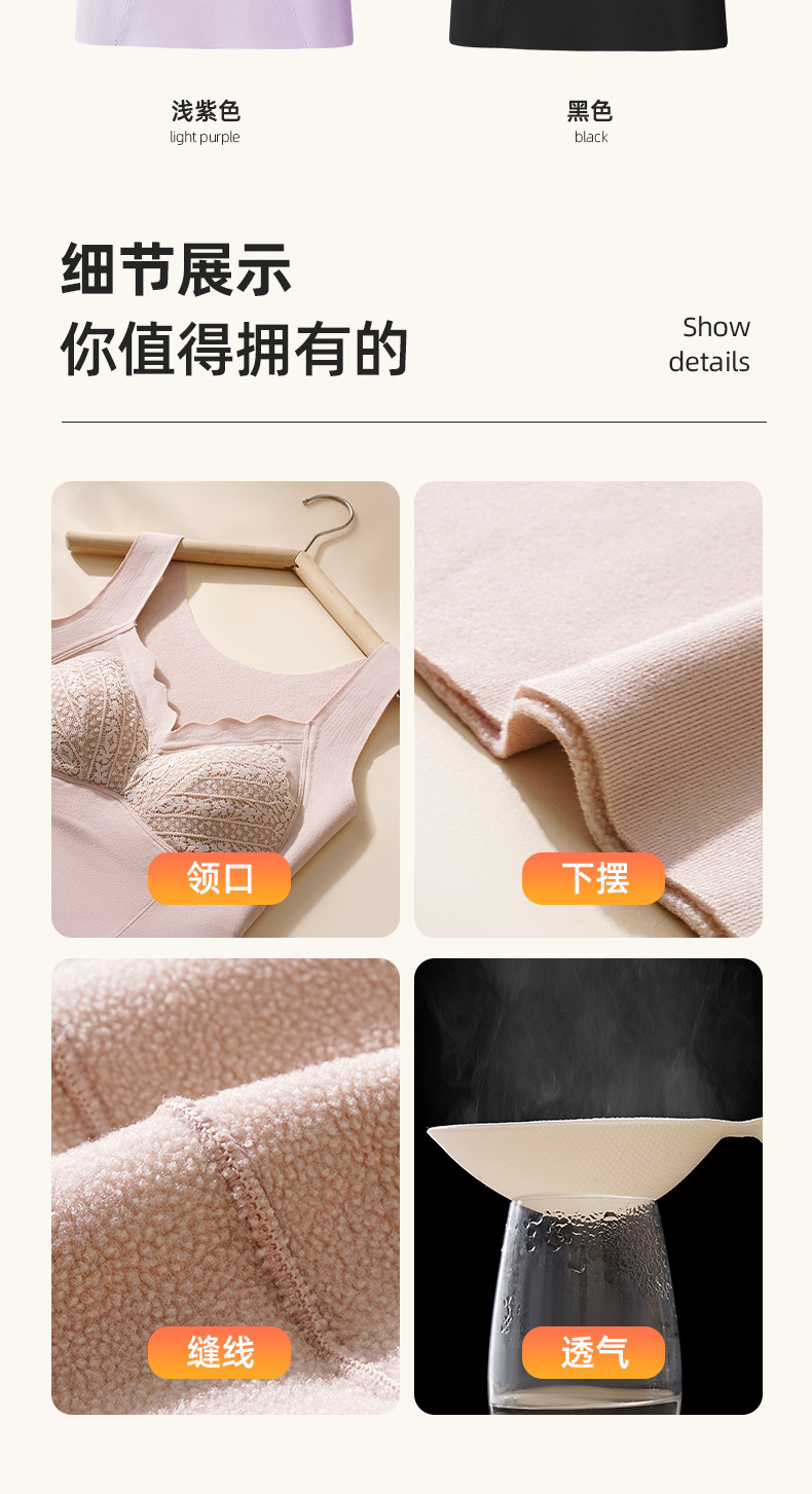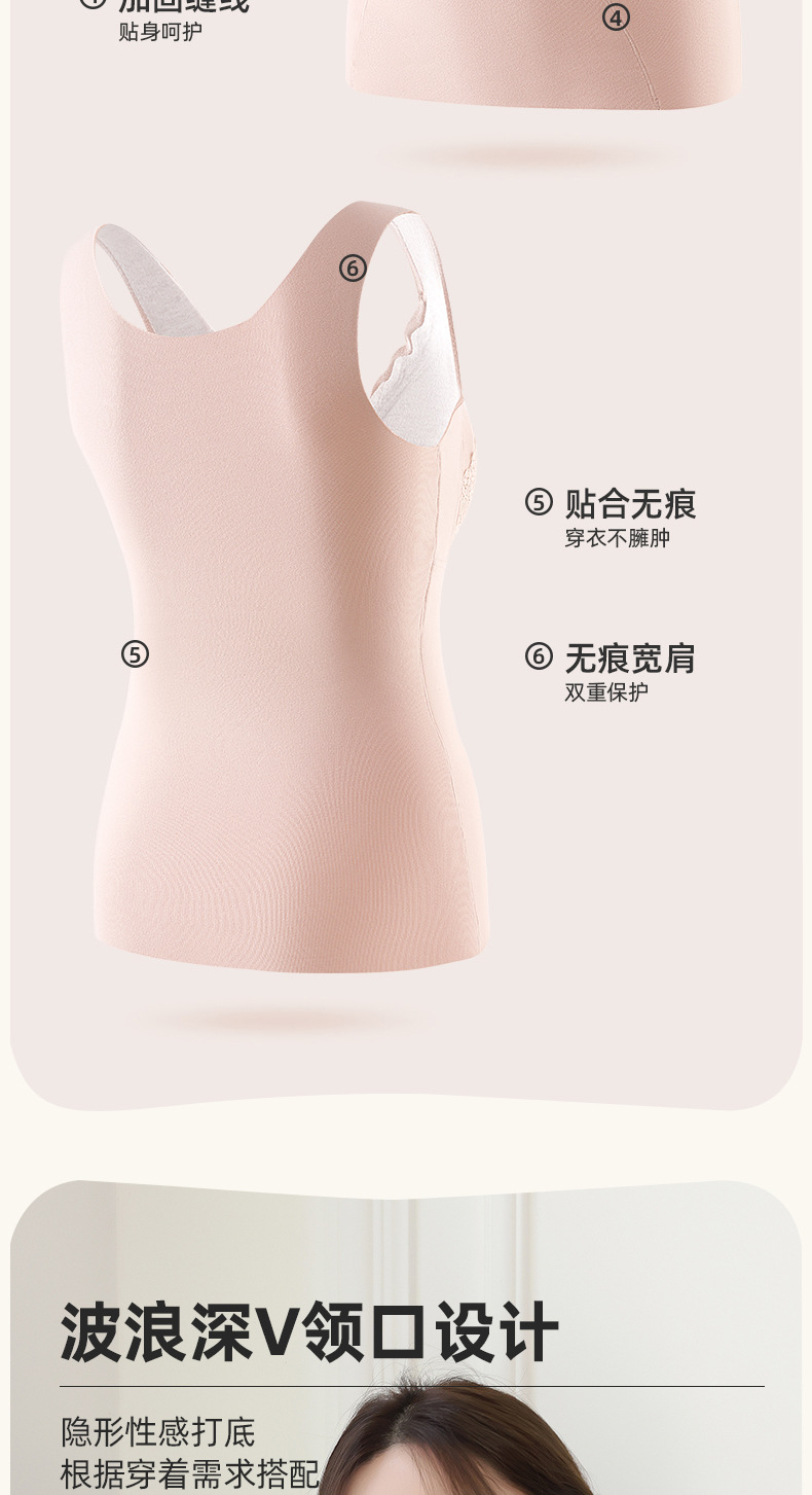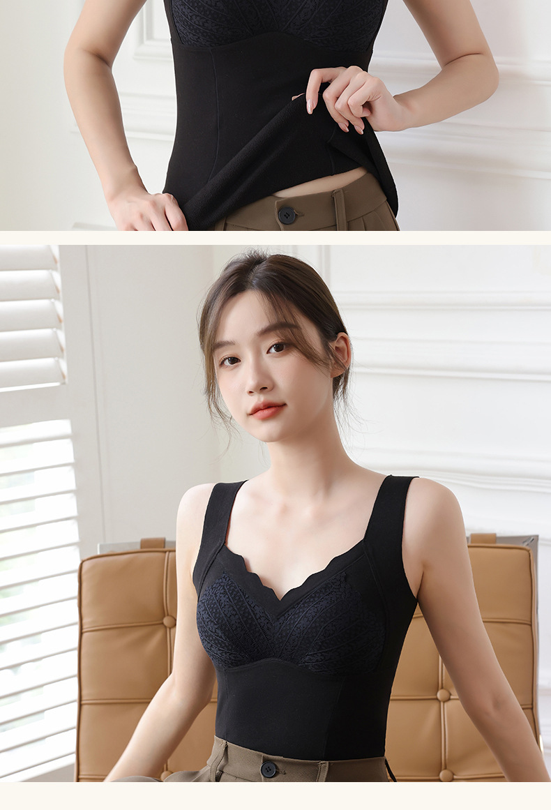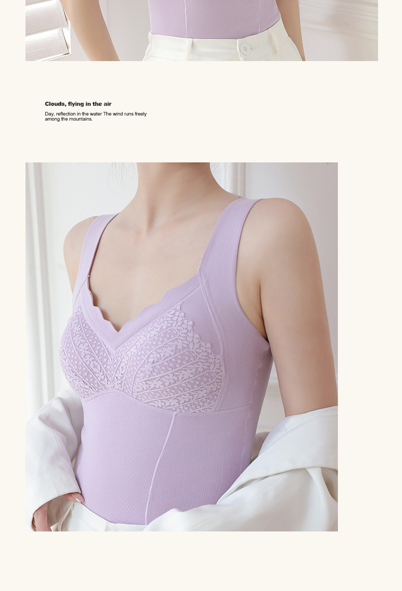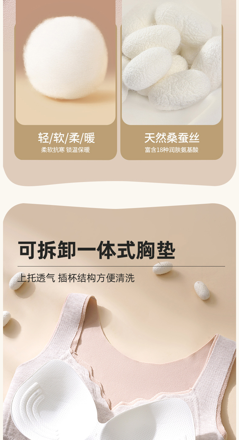 新款小波浪蚕丝保暖背心女自带胸垫修身贴肤保暖打底内穿蕾丝内衣
