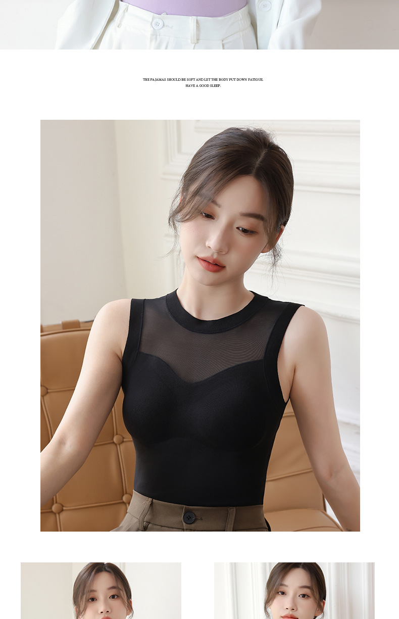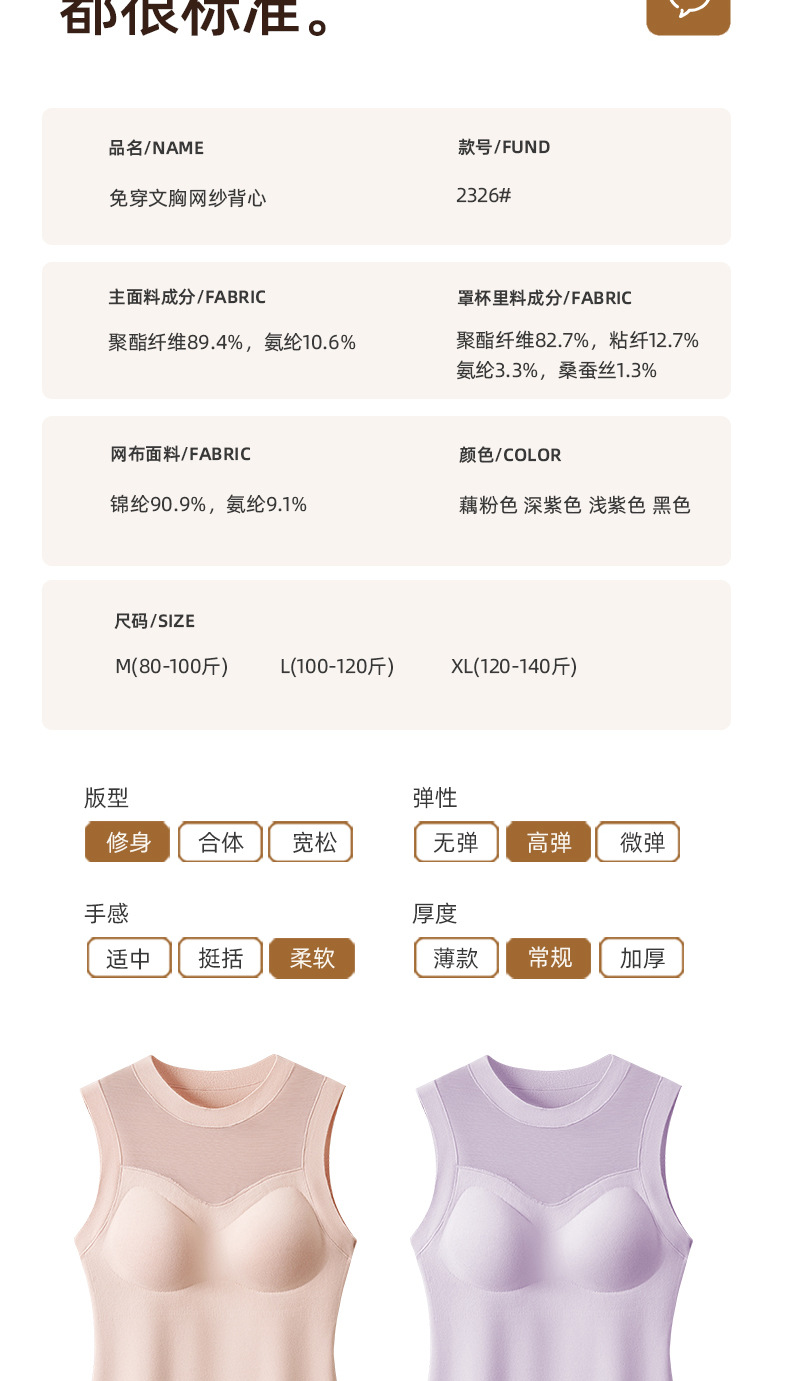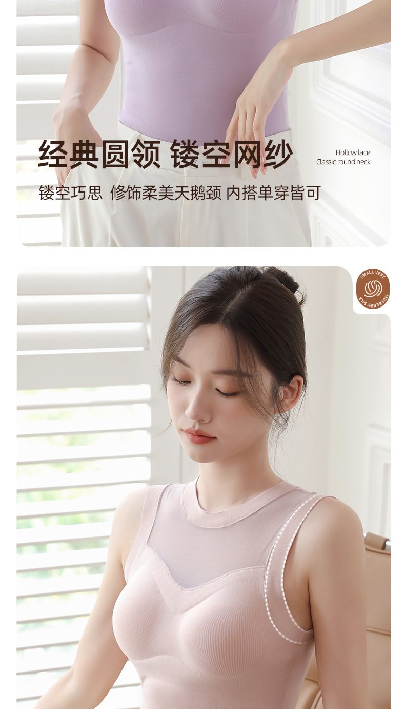 新款小圆领性感蕾丝网纱工字保暖背心女免穿文胸固定杯打底内衣女