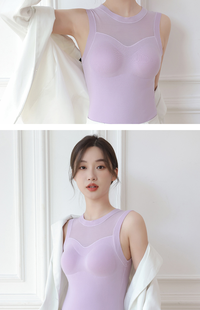 【新款上市,引爆时尚潮流!】热卖款小波浪蚕丝背心,修身贴肤,保暖打底内穿!性感蕾丝网纱工字设计,让你不仅感到温暖,更散发迷人魅力。内带胸垫,塑造完美曲线!