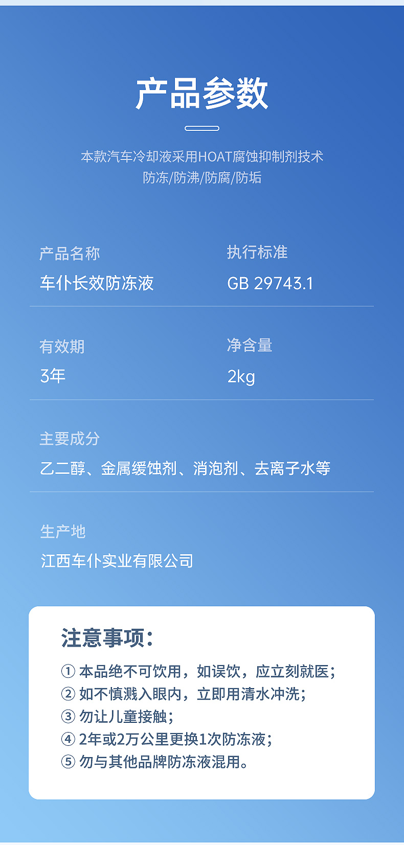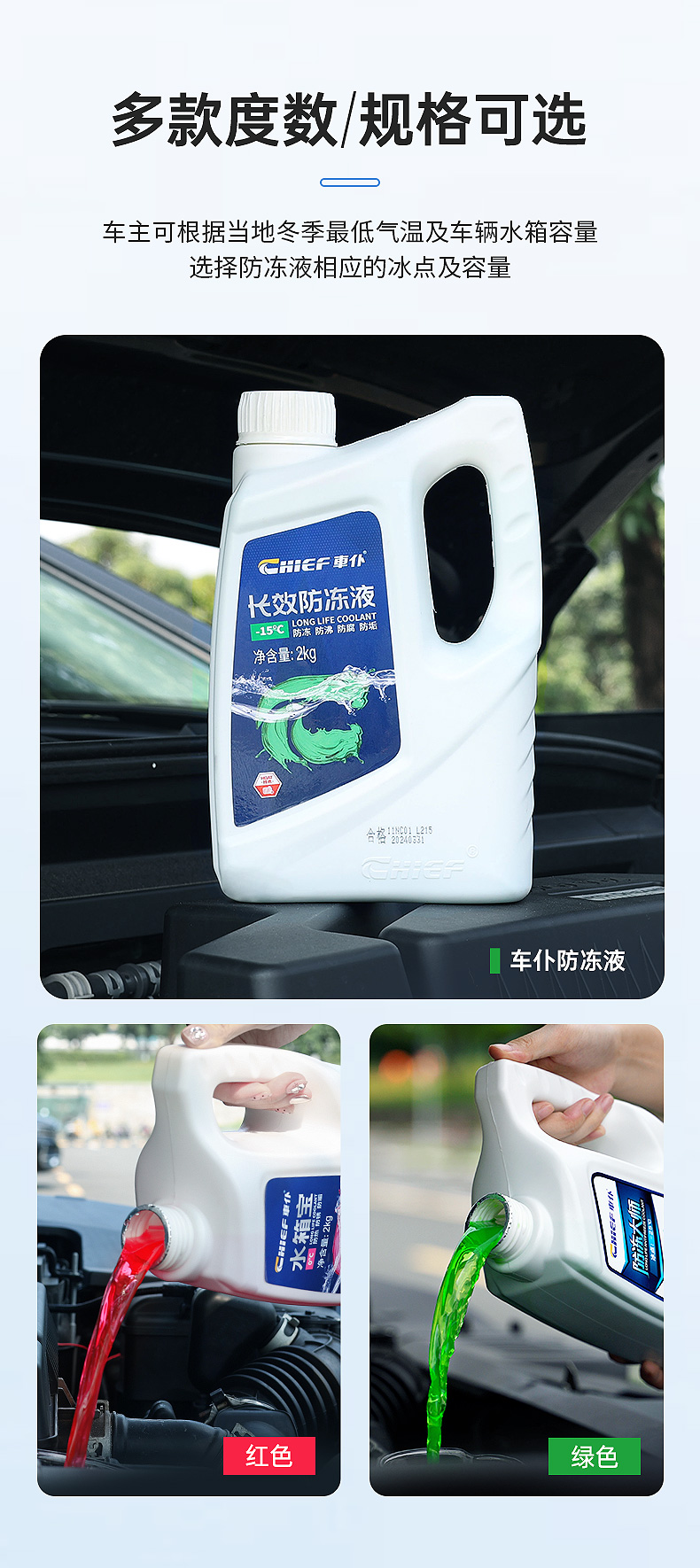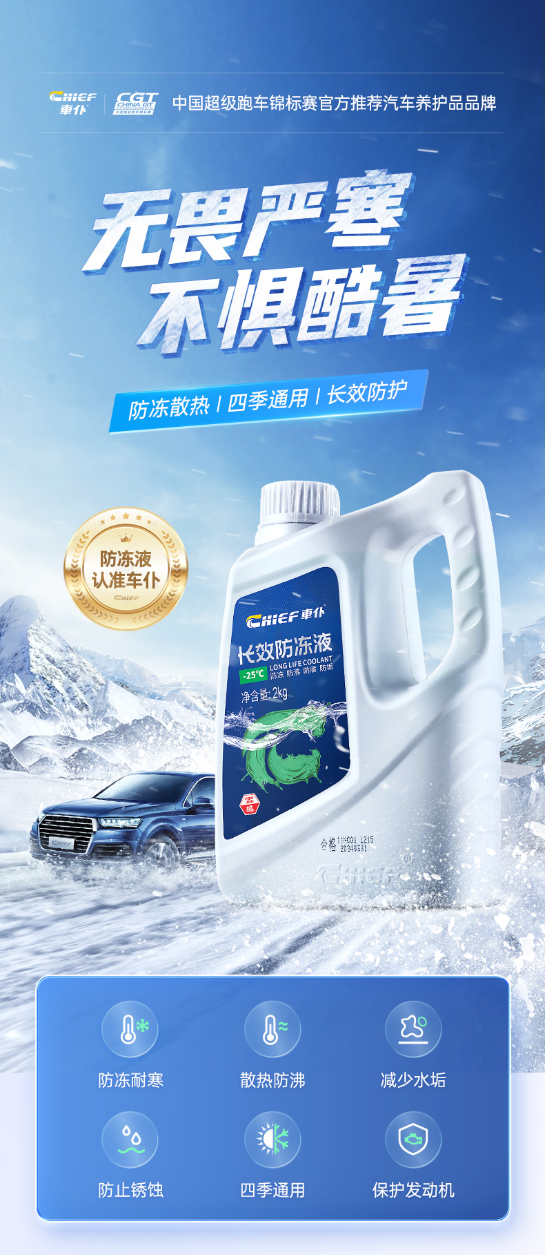 车仆长效防冻液 抗寒防冻 低至-50°C 保护发动机