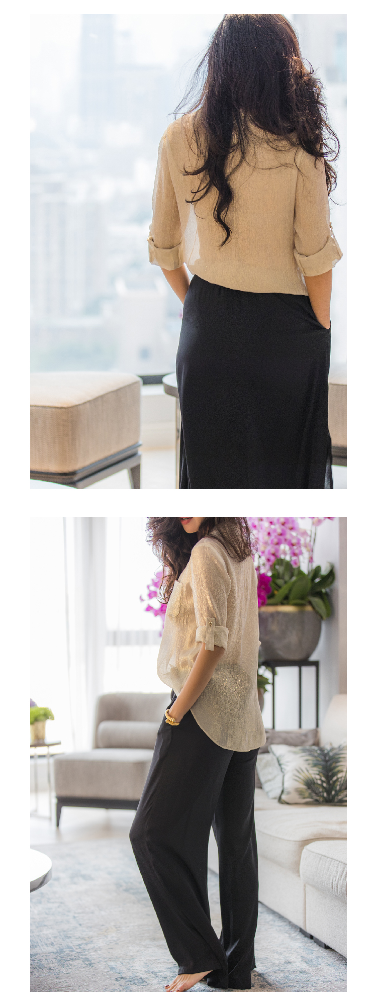 CG|Anne Silk lurex shirt [真丝V领长袖衬衫]