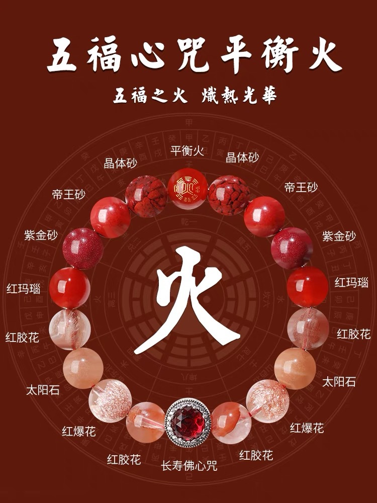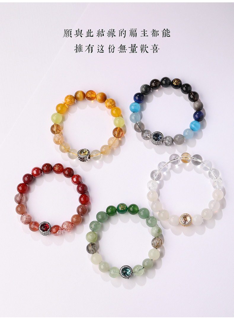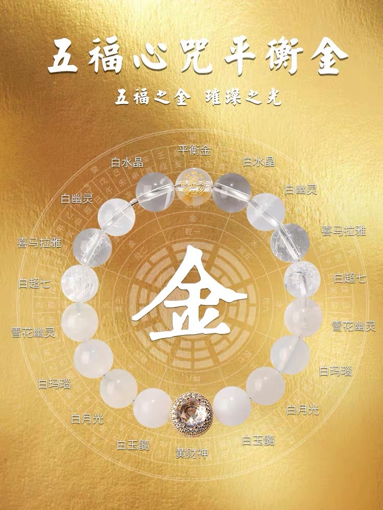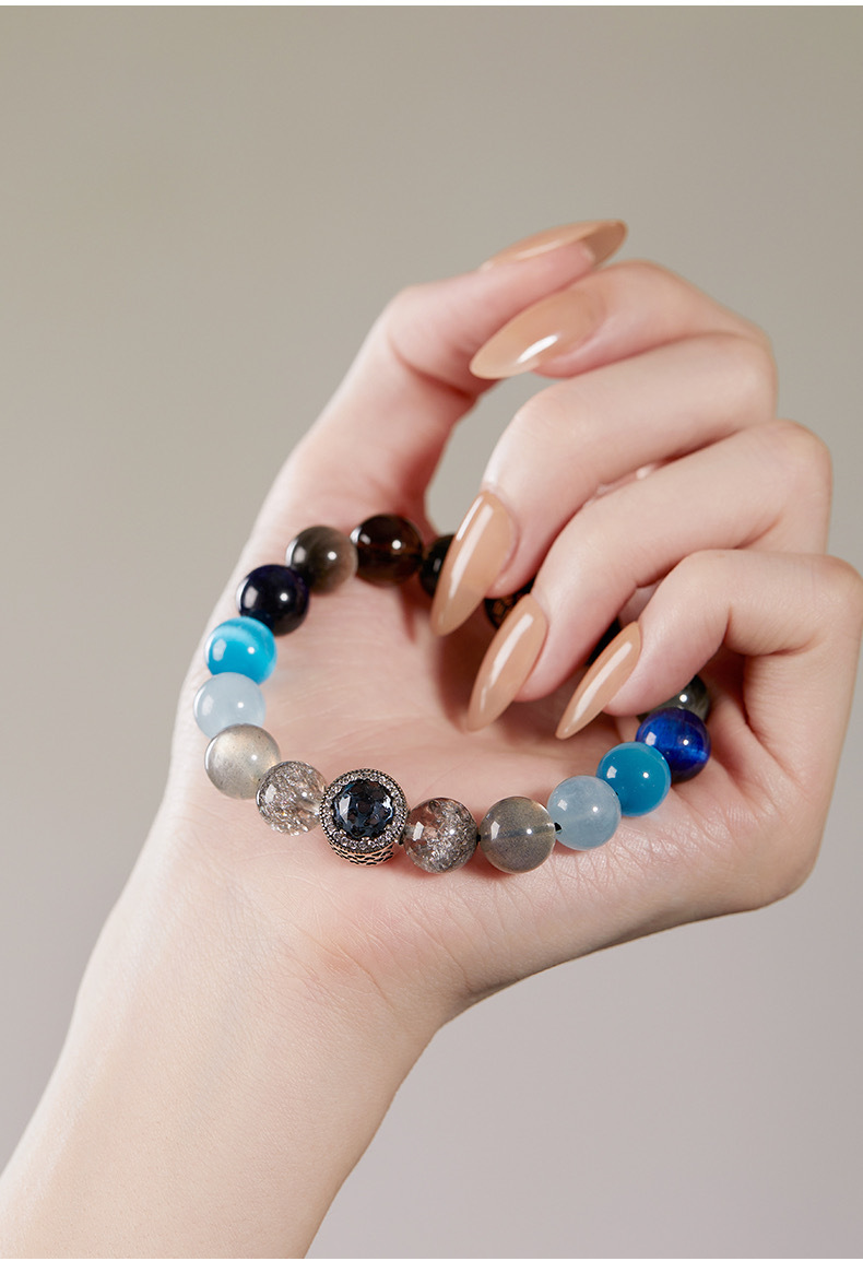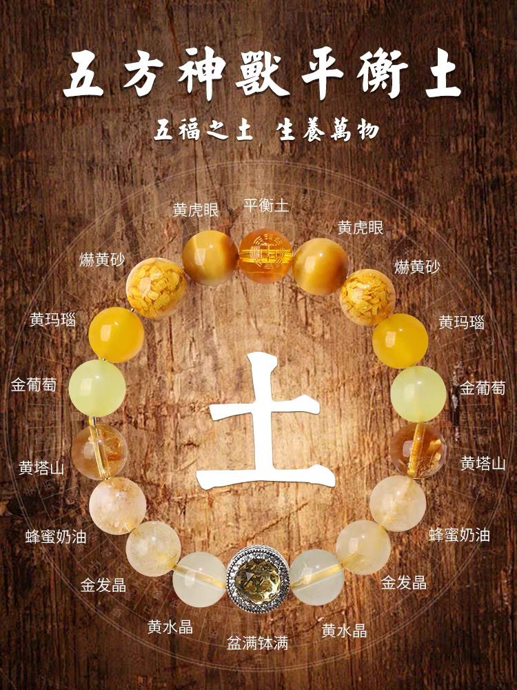 丁摩 正品五行补金木水火土多宝手链男女款五行平衡能量手串护身符海蓝宝女5ZF-153