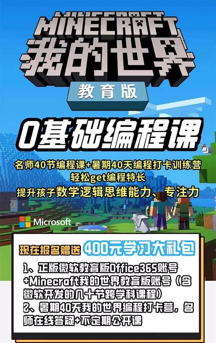 看过我们的神仙课程设置,相信你一定被这套课程的超高性价比种草,如果看了下面的介绍,没想到附赠的一年正版微软office365账号(含Minecraft我的世界教育版账号)才是寓教于乐的潘多拉魔盒,你一定会毫不犹豫惊呼:“买它!”