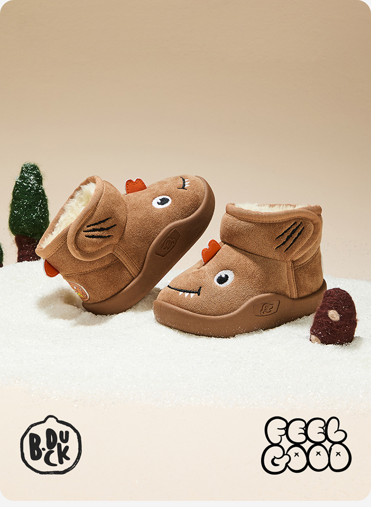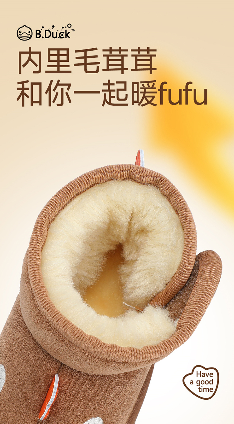 B.Duck小黄鸭童鞋冬季男女童魔术贴雪地靴冬季新款保暖靴子22-30 B5586874