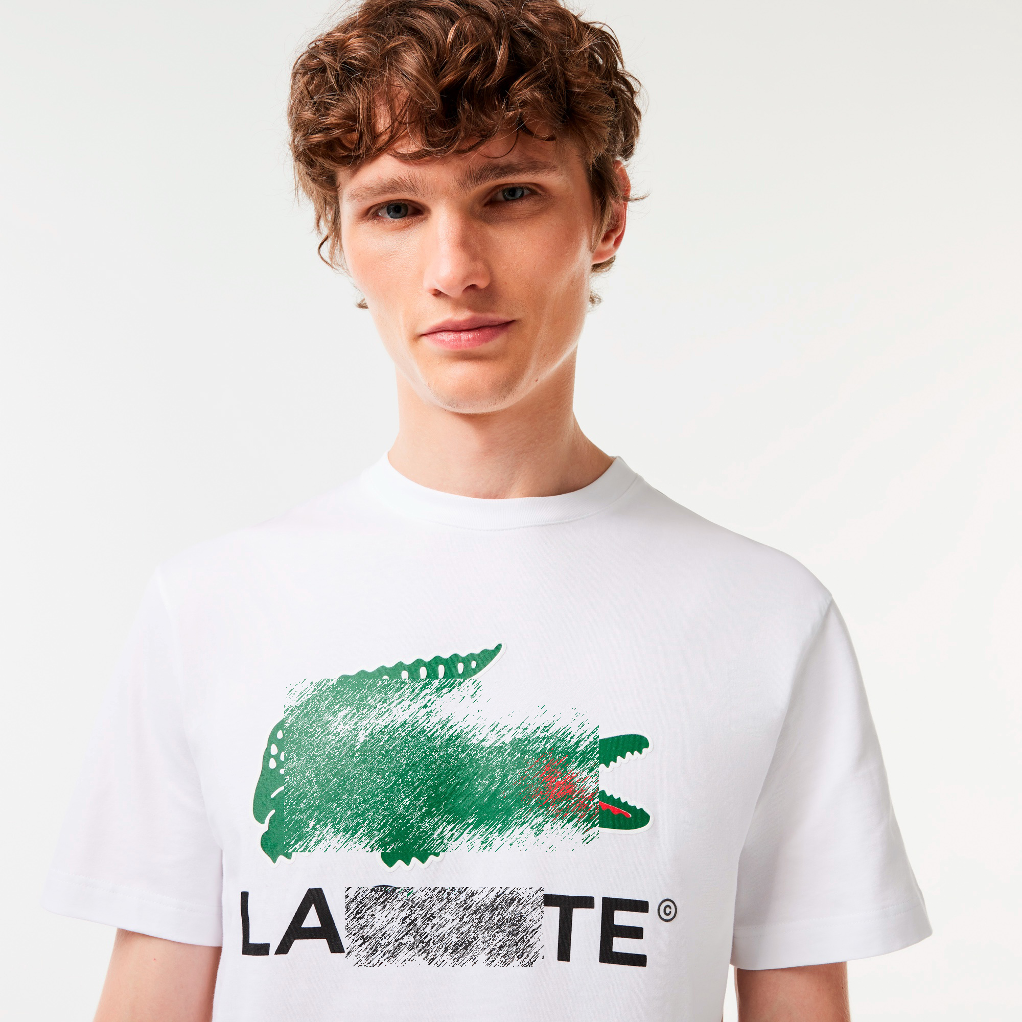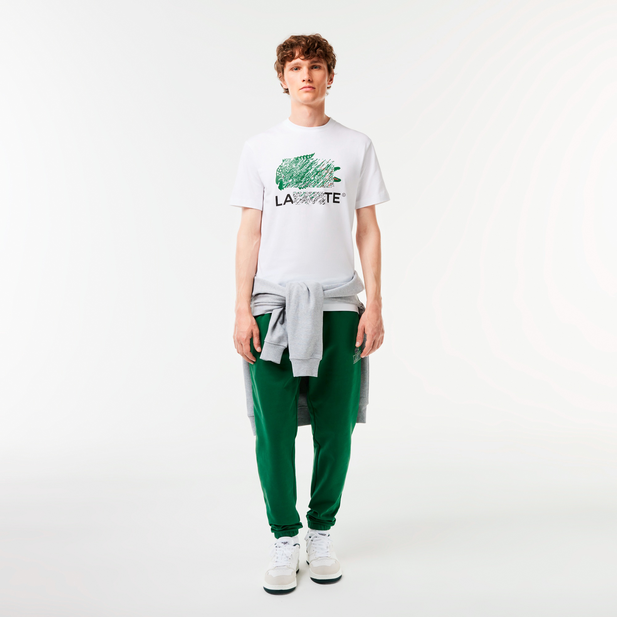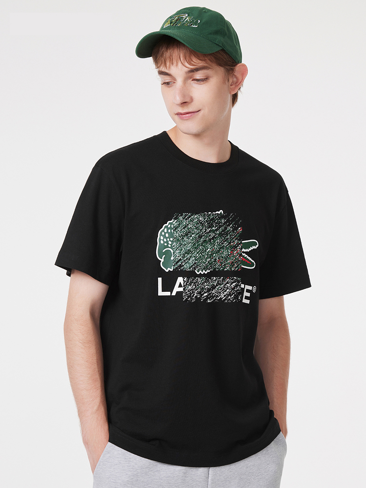 小鱼 2024休闲男装 logo图案印花 衣角刺绣小标 纯棉圆领短袖T恤