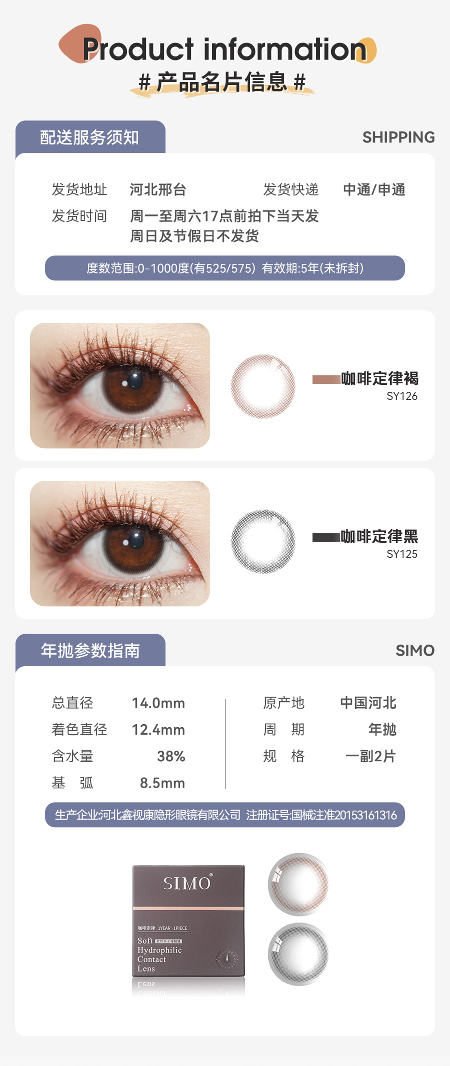 「2副均¥69」SIMO咖啡定律黑/咖啡定律褐年抛 | 妈生伪素颜艺考眼!着色12.4mm 1副2片