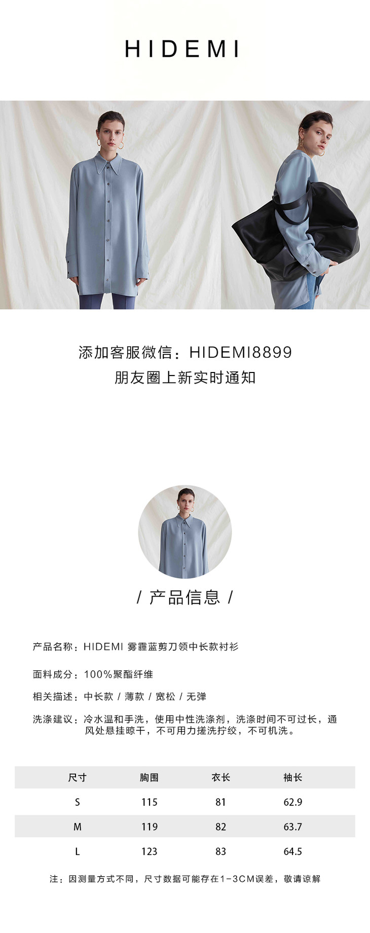 HIDEMI 雾霾蓝剪刀领中长款衬衫