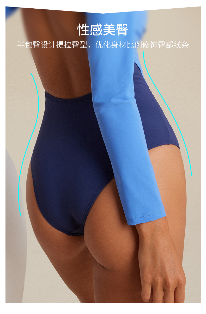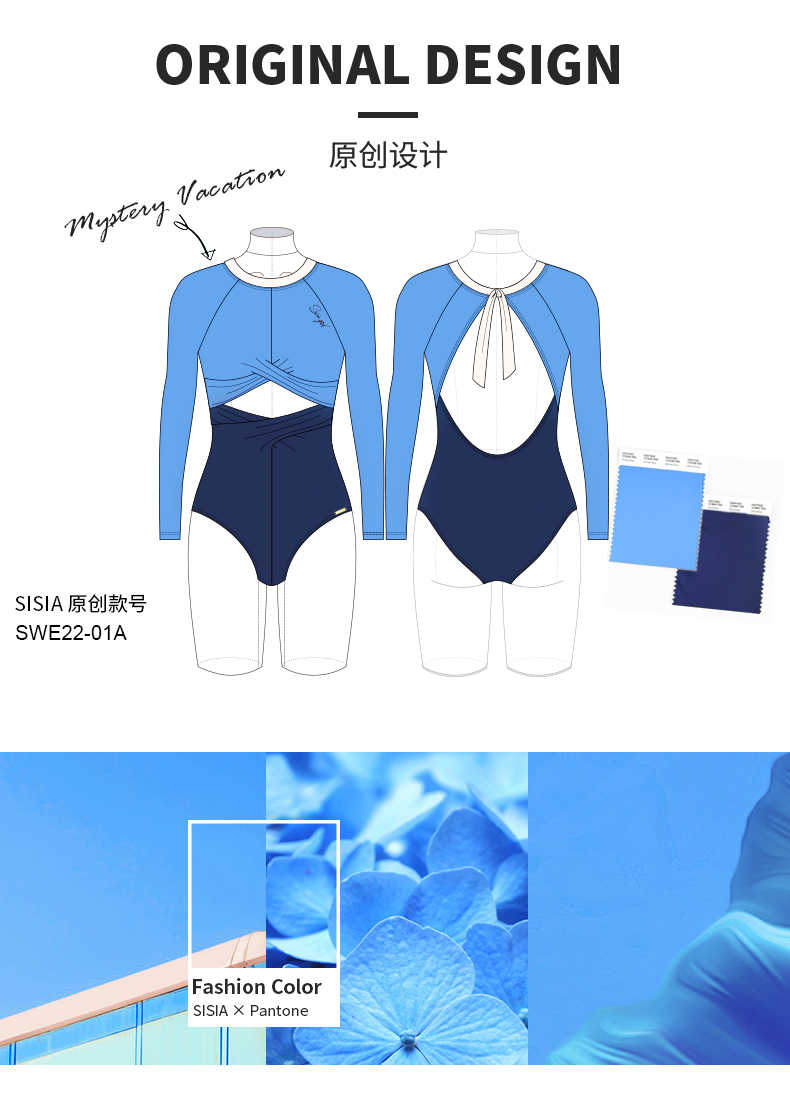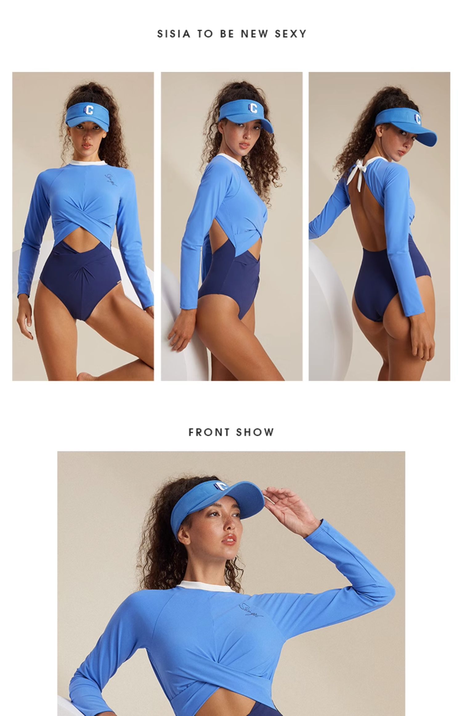 sisia2023新款泳衣女夏长袖防晒性感镂空撞色显瘦冲浪连体泳衣