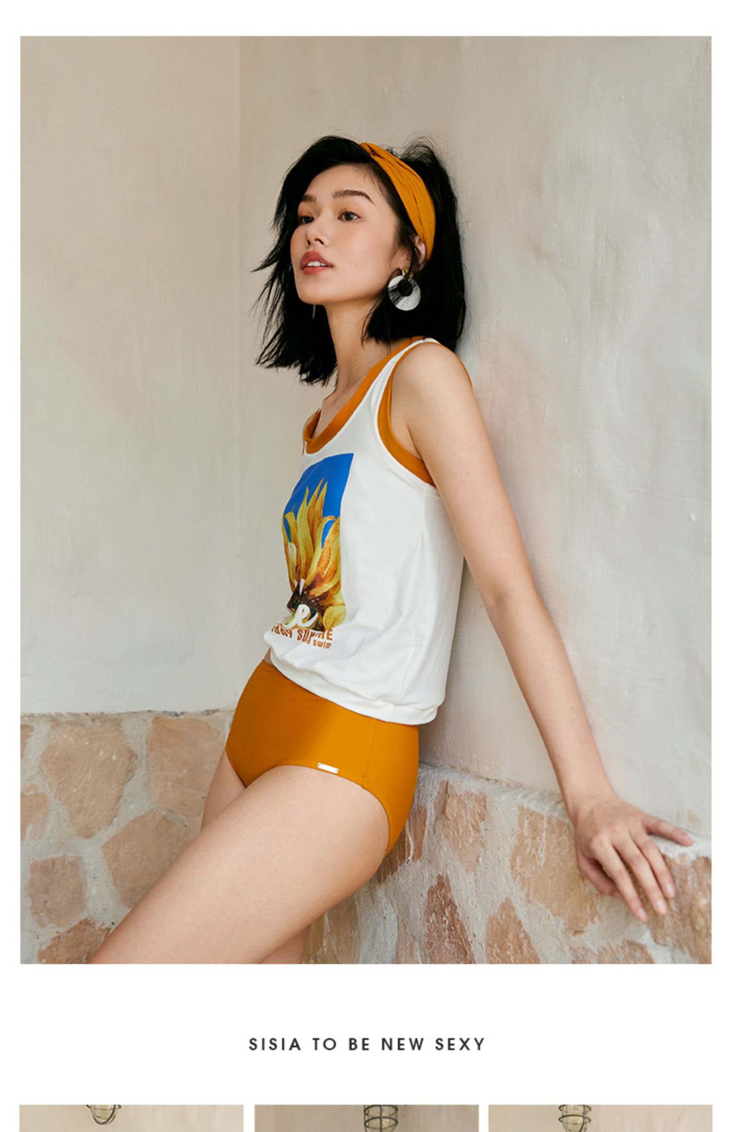 sisia2022新款泳衣女复古港风泡温泉分体式学生海边度假保守泳衣